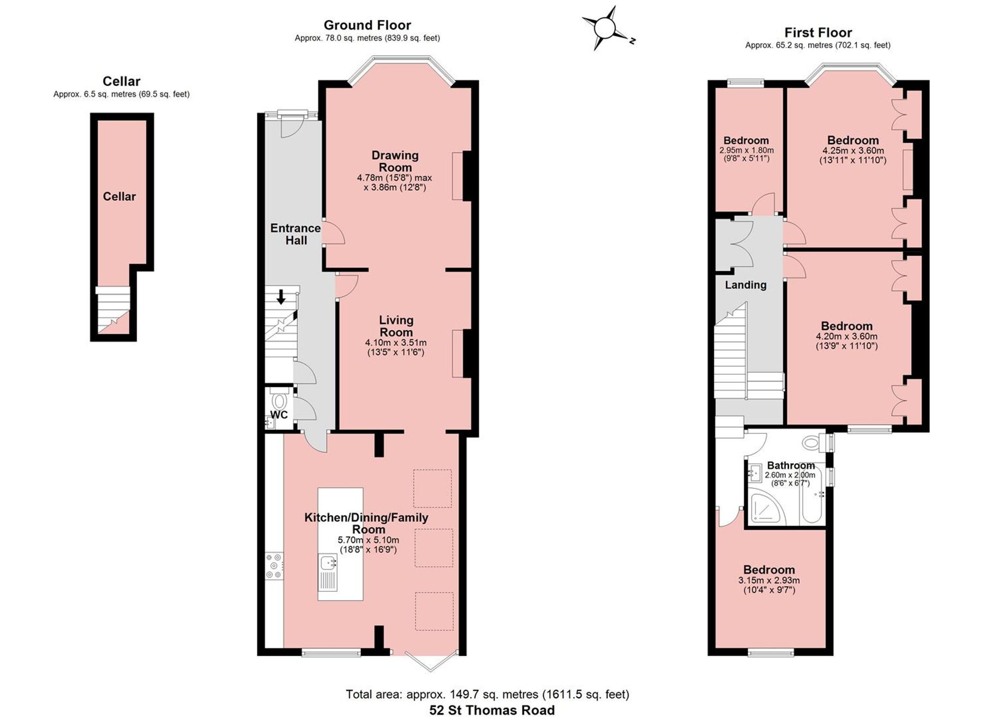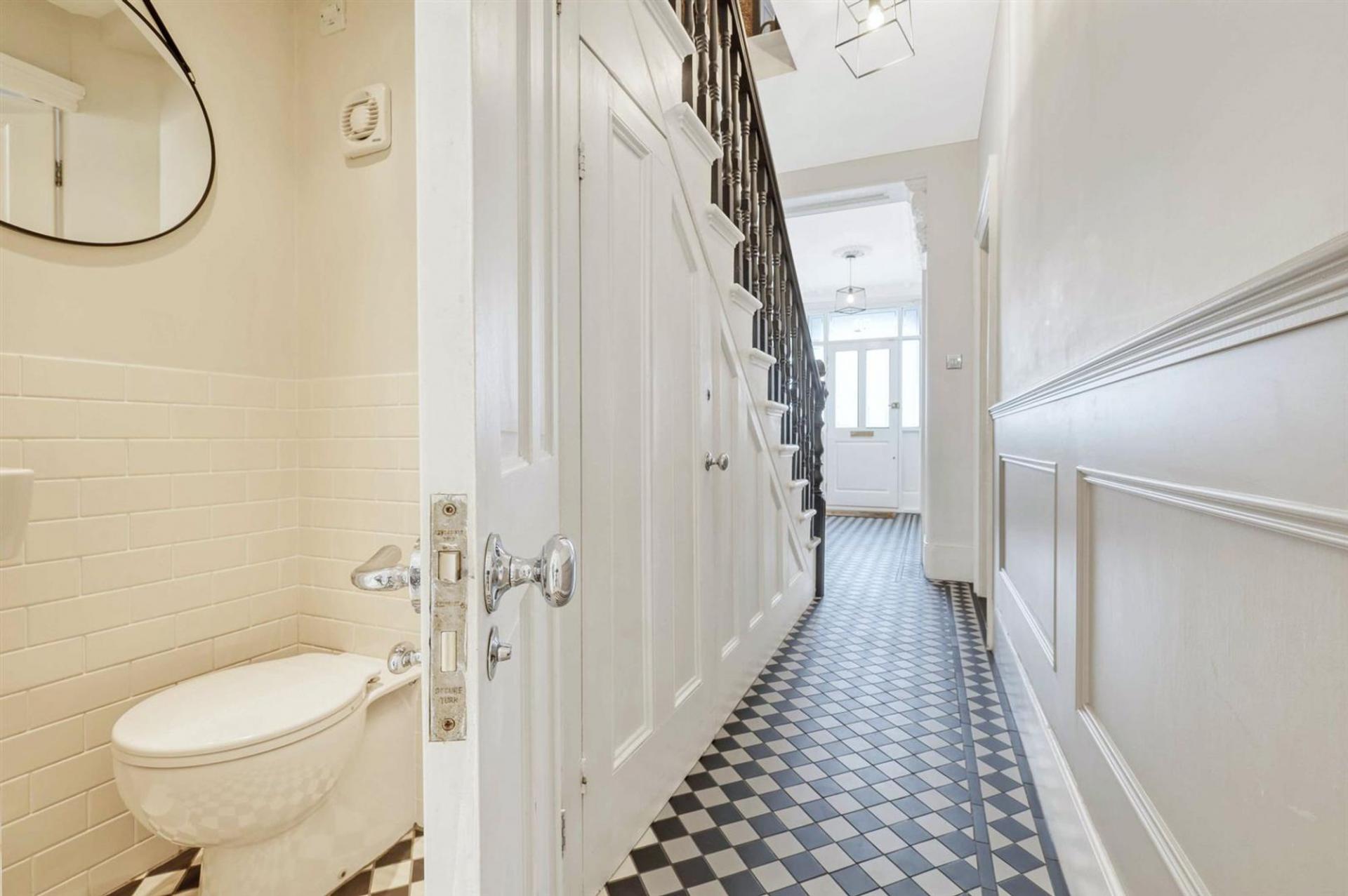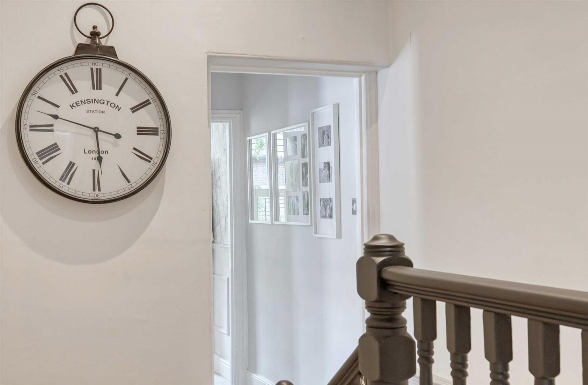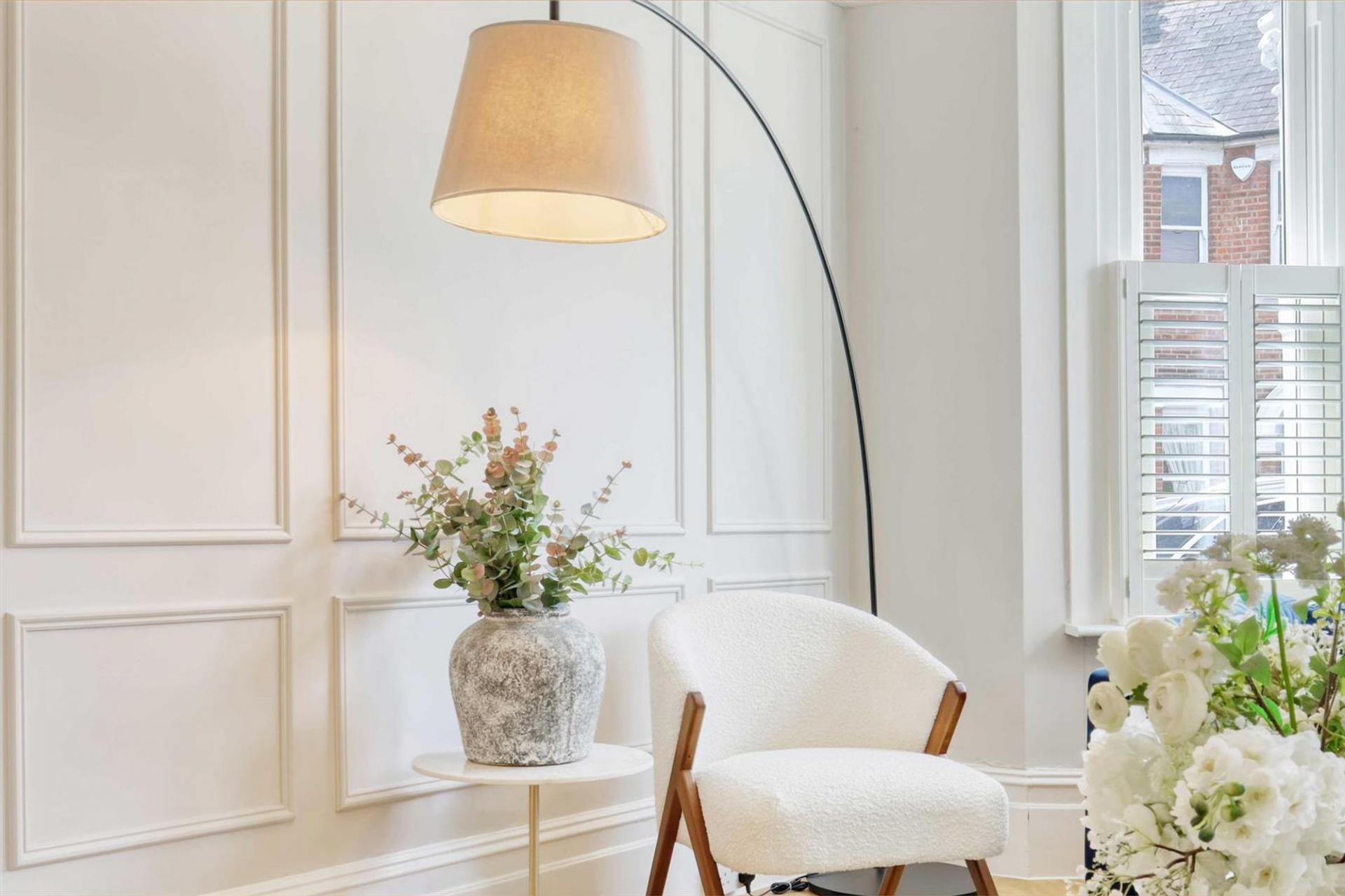 Ascending to the first floor, the property boasts three generously sized bedrooms and an additional fourth room ideal as a nursery, home office, or dressing room. The master bedroom, with its own bay window, offers excellent space, with two further bedrooms being well-proportioned and stylishly decorated. A modern family bathroom is equipped with high-quality fixtures.