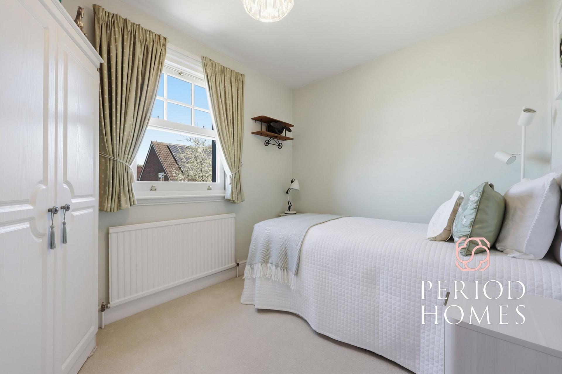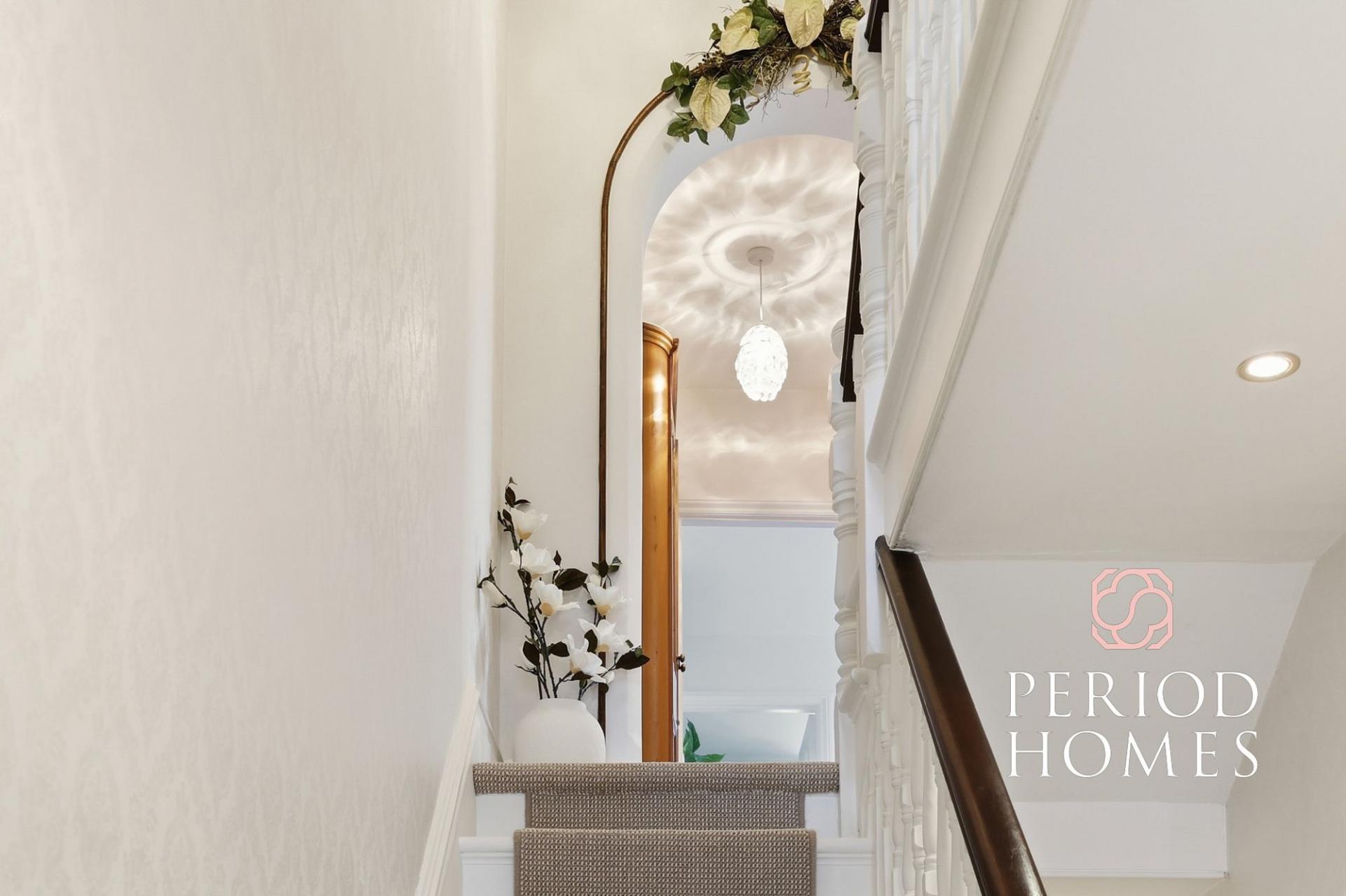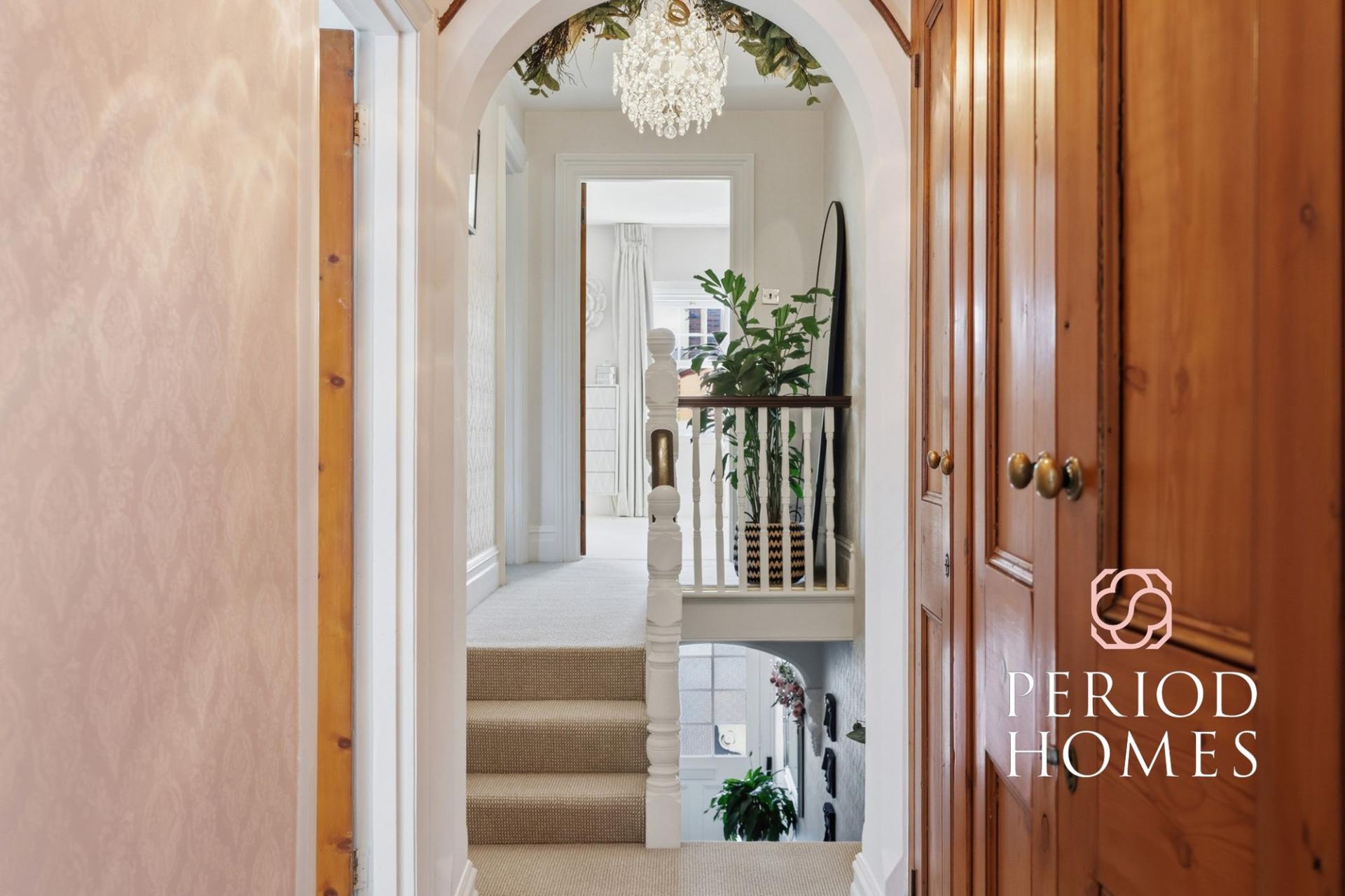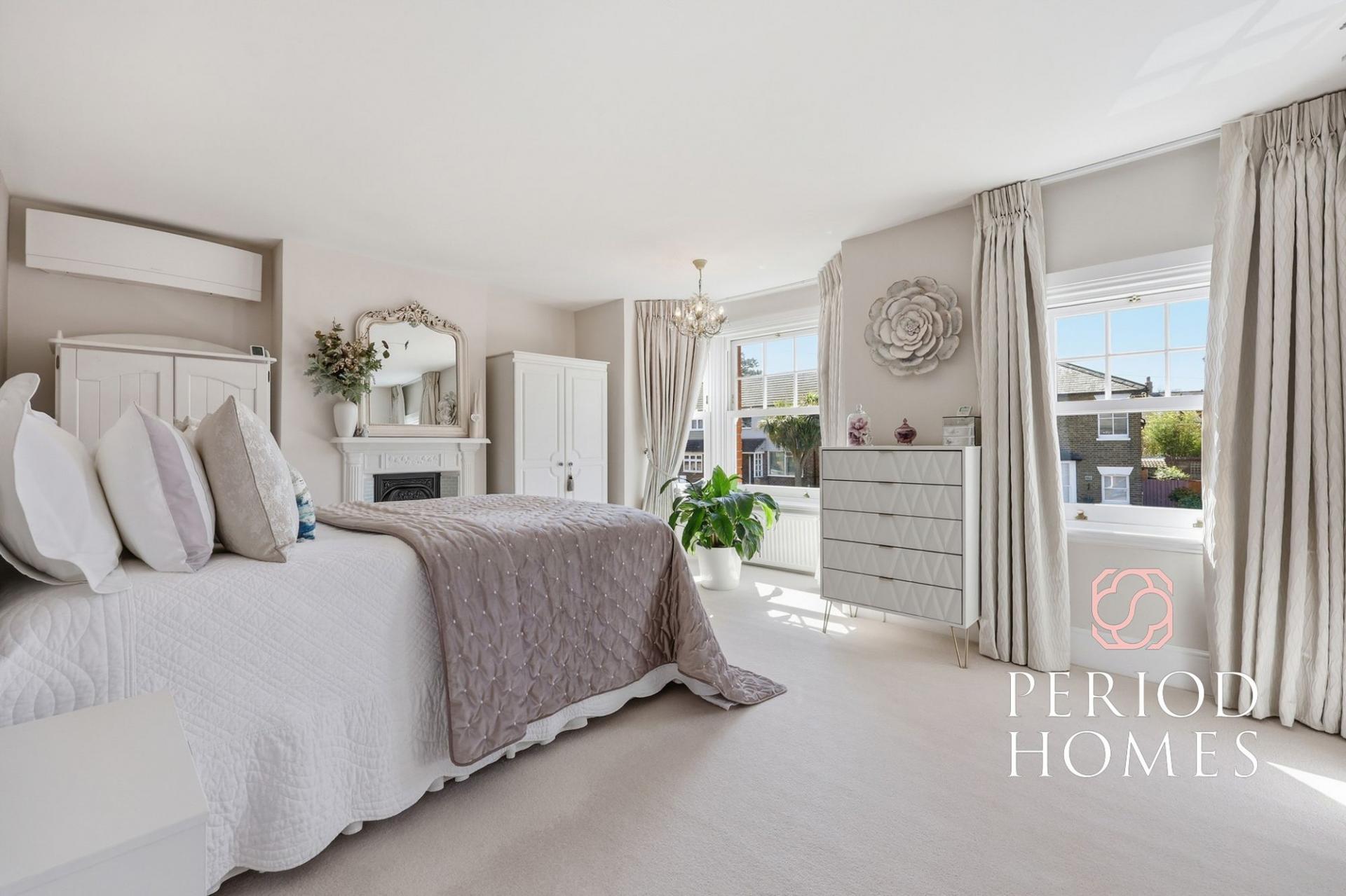 Upstairs, the first floor provides well balanced bedroom space. The principal bedroom is positioned to the front of the property and is a particularly generous double, featuring dual windows and an original style fireplace. A further double bedroom sits alongside, while two additional rooms are located to the rear, one of which is currently used as a home office. A modern family bathroom completes the first floor.