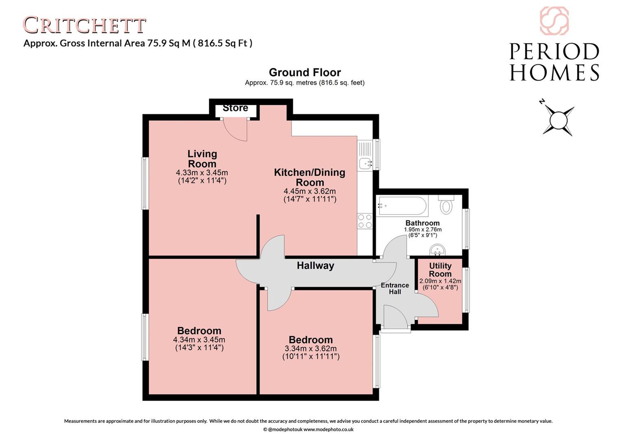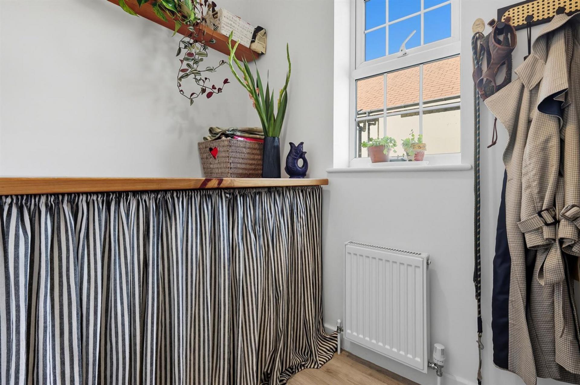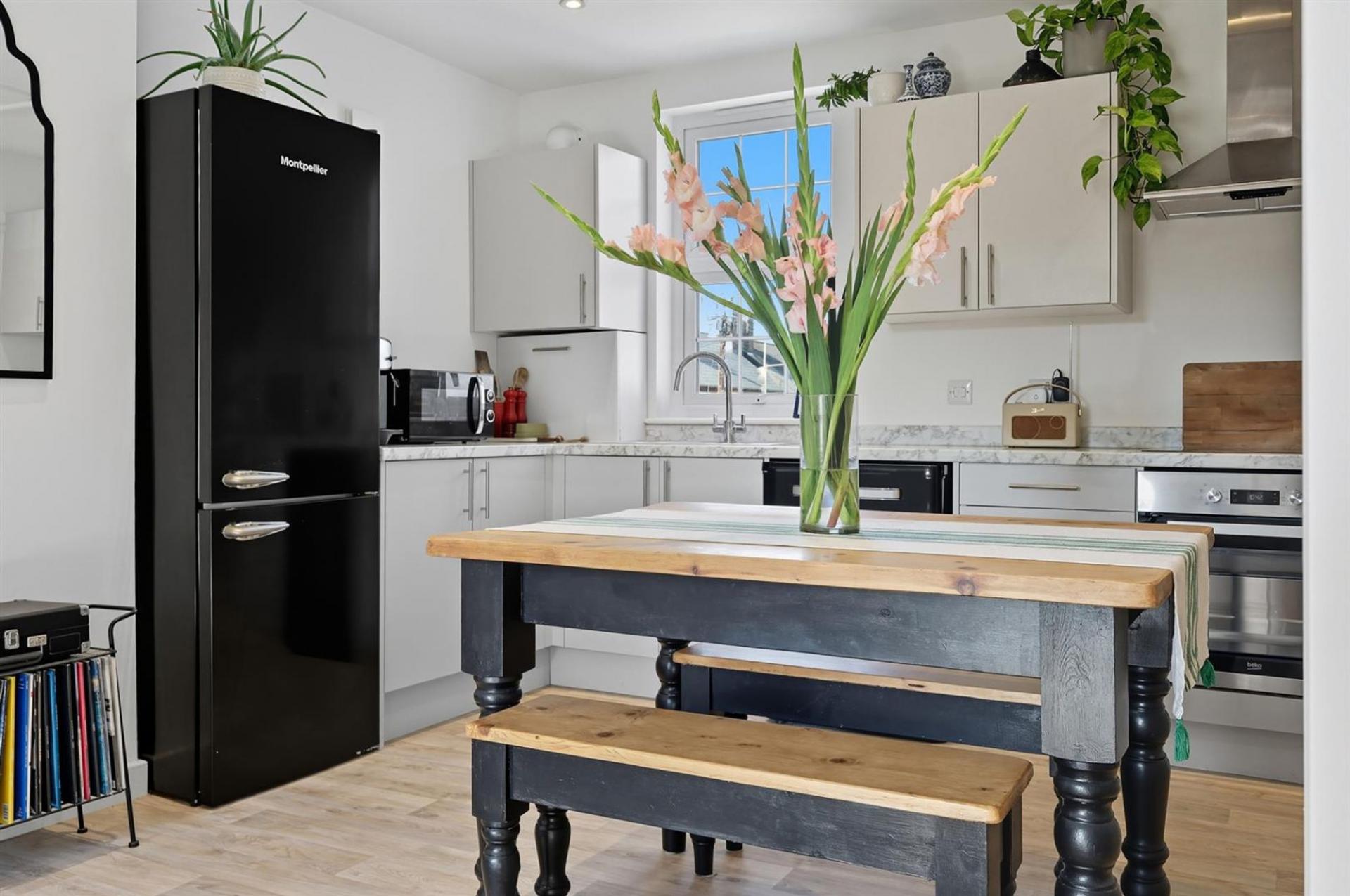 Stepping inside, you are welcomed by a generous hallway leading into the bright and spacious living accommodation. The well-proportioned living room, with its inviting atmosphere, flows effortlessly into the kitchen/dining room, a thoughtfully designed space ideal for both entertaining and everyday living. The kitchen provides ample storage and worktop space, while retaining a homely and practical feel. Two double bedrooms are arranged off the hallway, each offering excellent proportions and flexibility for use as guest rooms, home office or dressing space. The property also features a neatly finished bathroom and a useful utility room, adding convenience and practicality to the layout.