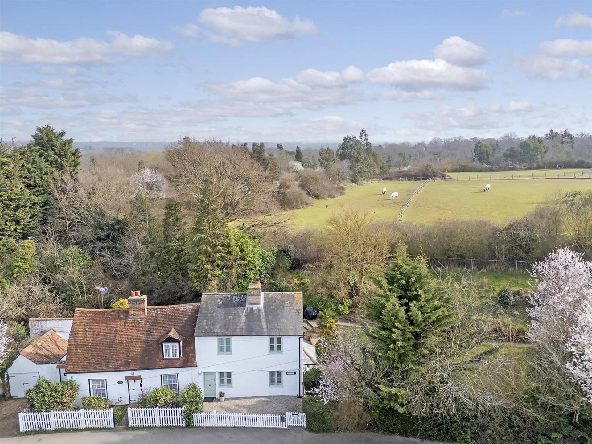 This enchanting early 19th-century timber-framed cottage (not Listed) once a pair of cottages now combined into one, offers a blend of period charm and modern comfort. Located on a good size plot with potential to extend (stpp) in the highly desirable North Hill, Little Baddow, this home has character and charm with exposed beams, a log burner, and a stable door leading to a beautifully maintained south-facing garden. The extended ground floor boasts a spacious kitchen and a convenient downstairs shower room, while the first floor offers two double bedrooms and a large family bathroom.