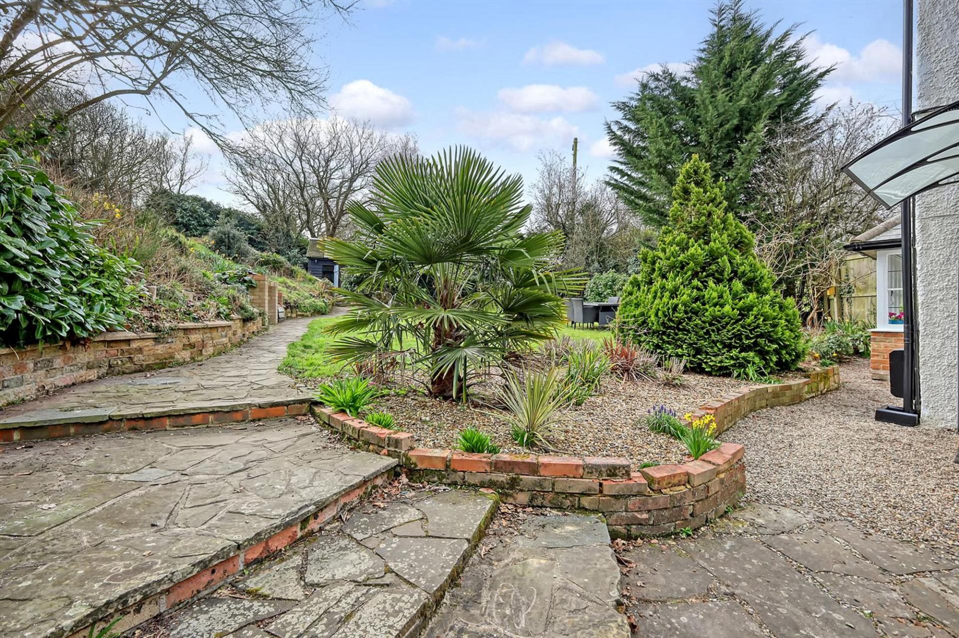 The exterior boasts a substantial south-facing garden, arranged over two levels, offering a perfect setting for outdoor dining and entertaining. With farmland surrounding the property, it offers a sense of rural seclusion. The detached garage and ample driveway parking provide practicality and convenience. The property also benefits from being within the catchment area for highly regarded local schools, making it an excellent choice for families.