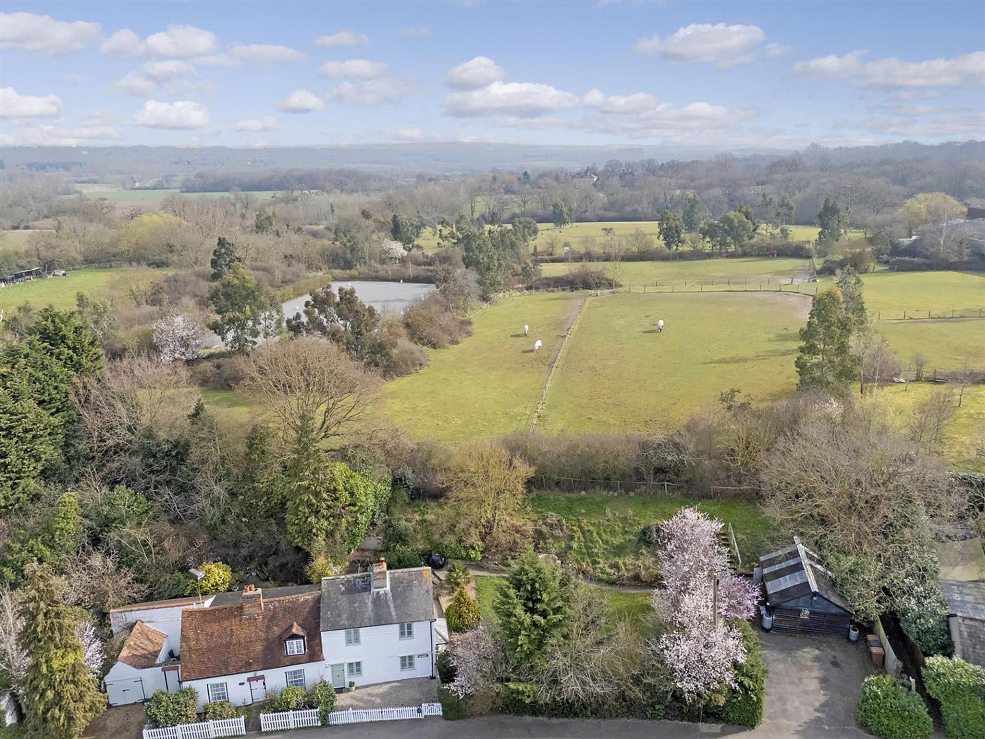 Located in the picturesque village of Little Baddow, the property enjoys a tranquil setting surrounded by rolling countryside and farmland. The village is a mecca for walkers and hikers with picturesque walks along river valley, woodlands carpeted with bluebells in the spring and many wildflower meadows. The Rodney, a charming Grade II listed pub, sits directly opposite, offering a perfect spot for a local meal or drink. The village is renowned for its scenic walks, including routes along the nearby Chelmer and Blackwater Navigation. Chelmsford city centre is a short drive away, providing an array of shops, restaurants, and excellent transport links, including direct trains to London Liverpool Street.
