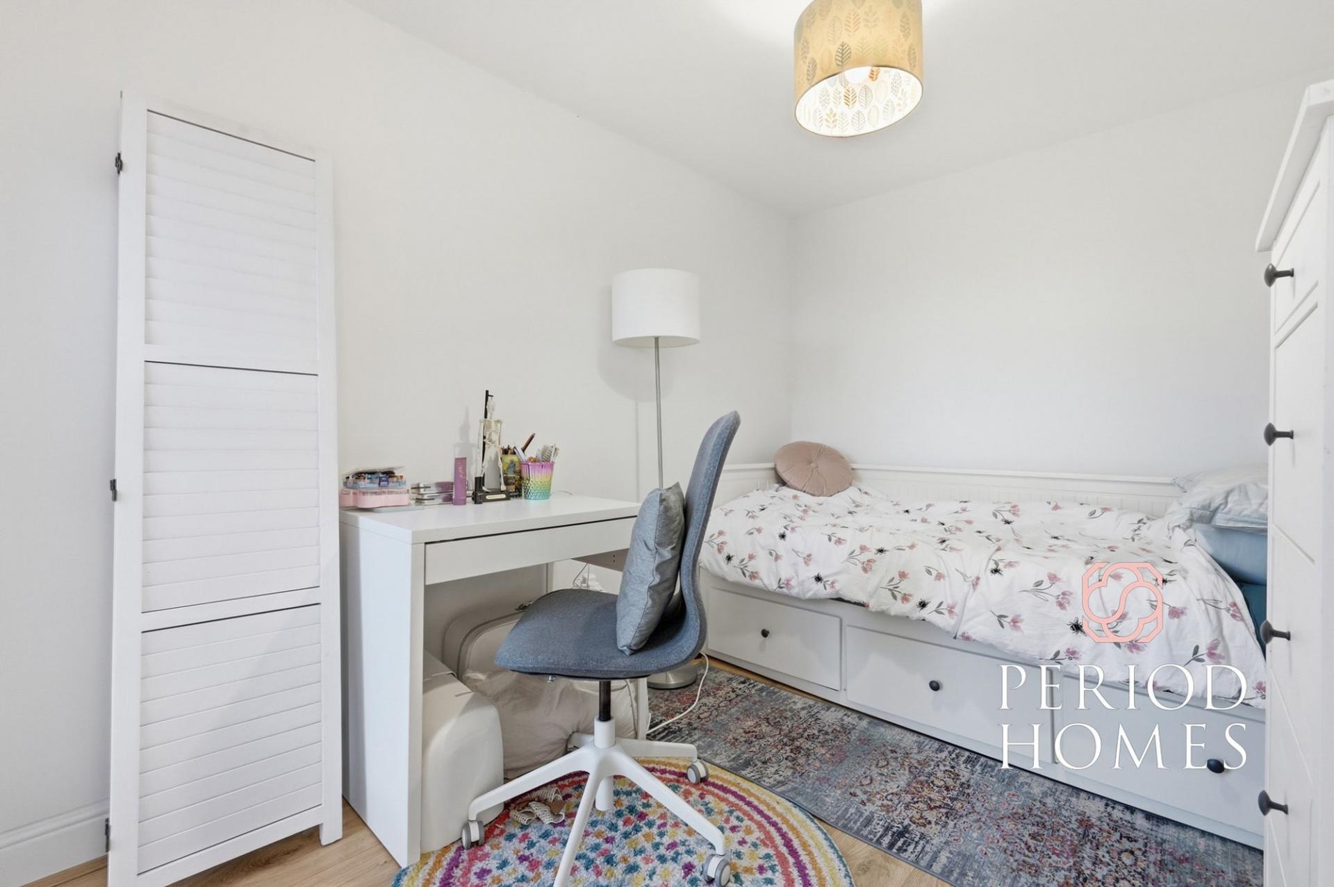 The first and second floors host five well-proportioned bedrooms, offering flexibility for family life, guest accommodation, or home working. The principal bedrooms are particularly spacious, complemented by two modern bathrooms, ensuring comfort and convenience for all occupants.