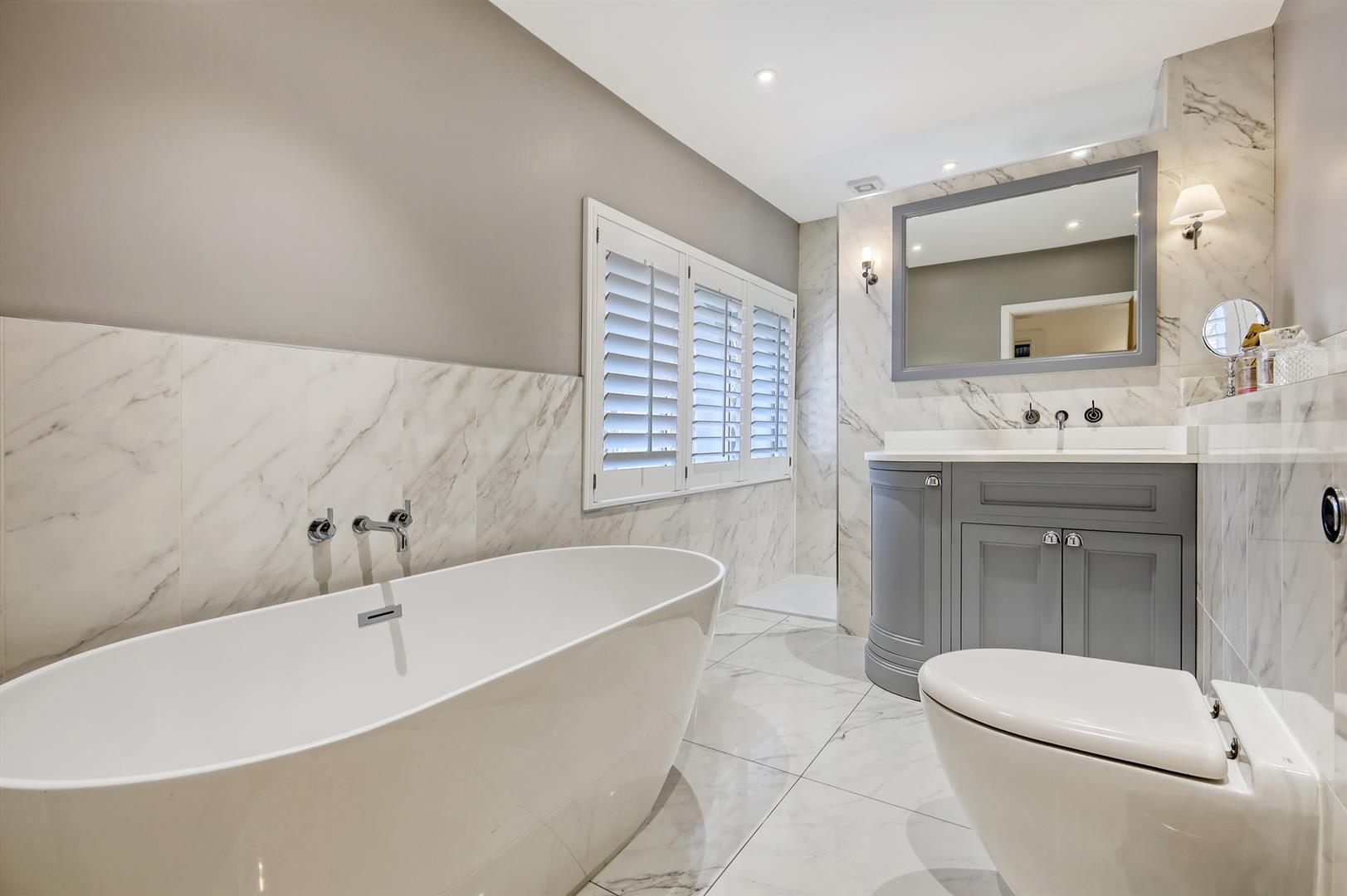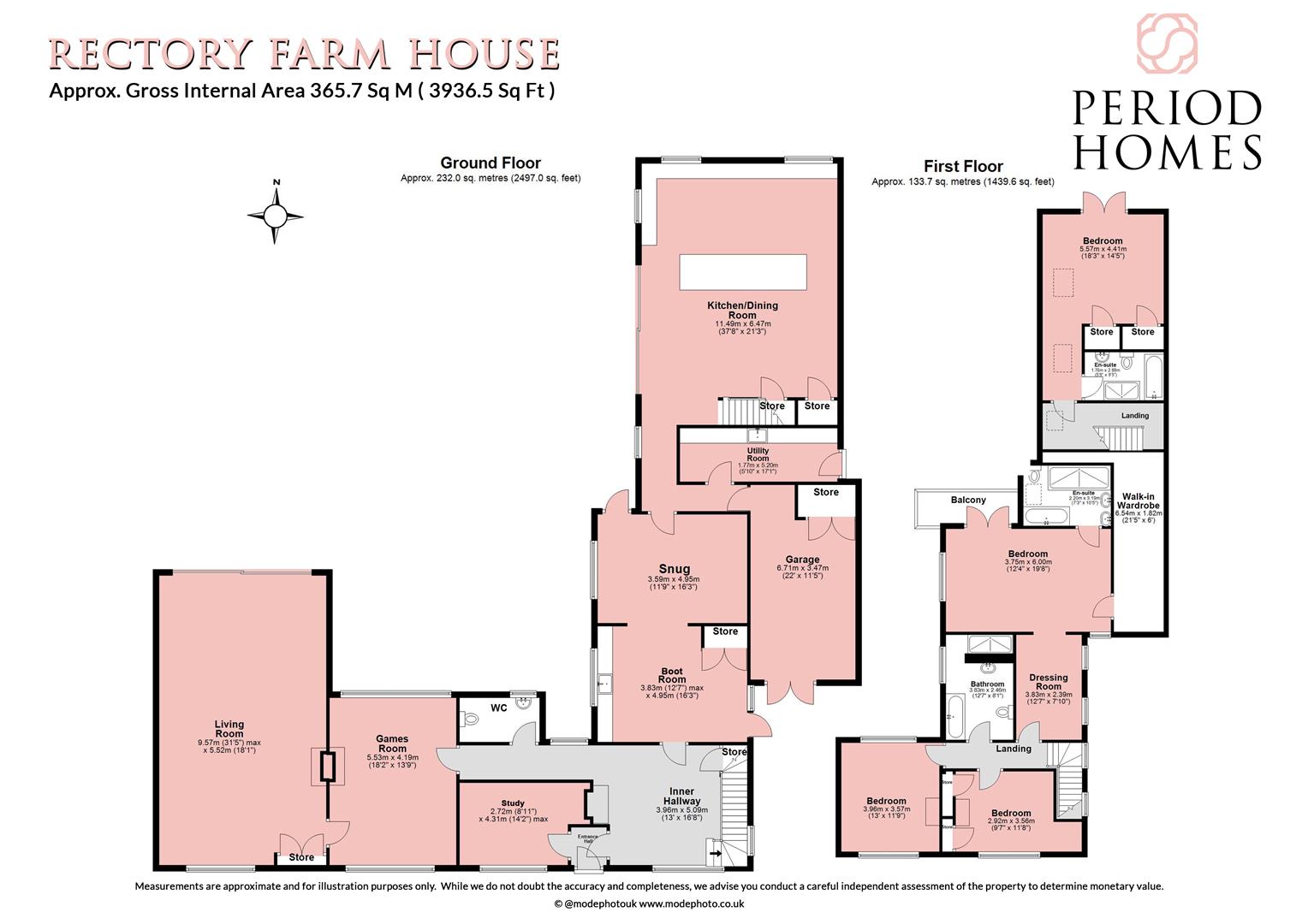 On the ground floor, a grand hallway sets the tone. To one side, a large living room with open fireplace and garden views offers a welcoming space, while the impressive games room with bar is perfect for entertaining. A snug and a WC sit nearby, and at the heart of the home, the open plan kitchen/dining room opens via bi-fold doors to a sun-soaked patio. Two utility rooms and a further reception room complete the ground floor. Upstairs, the main staircase leads to three double bedrooms including a luxurious master suite with dressing room, ensuite, walk-in wardrobe, and private balcony. The other two doubles share a stylish family bathroom. A second staircase leads to another ensuite double with a Juliette balcony overlooking the garden.