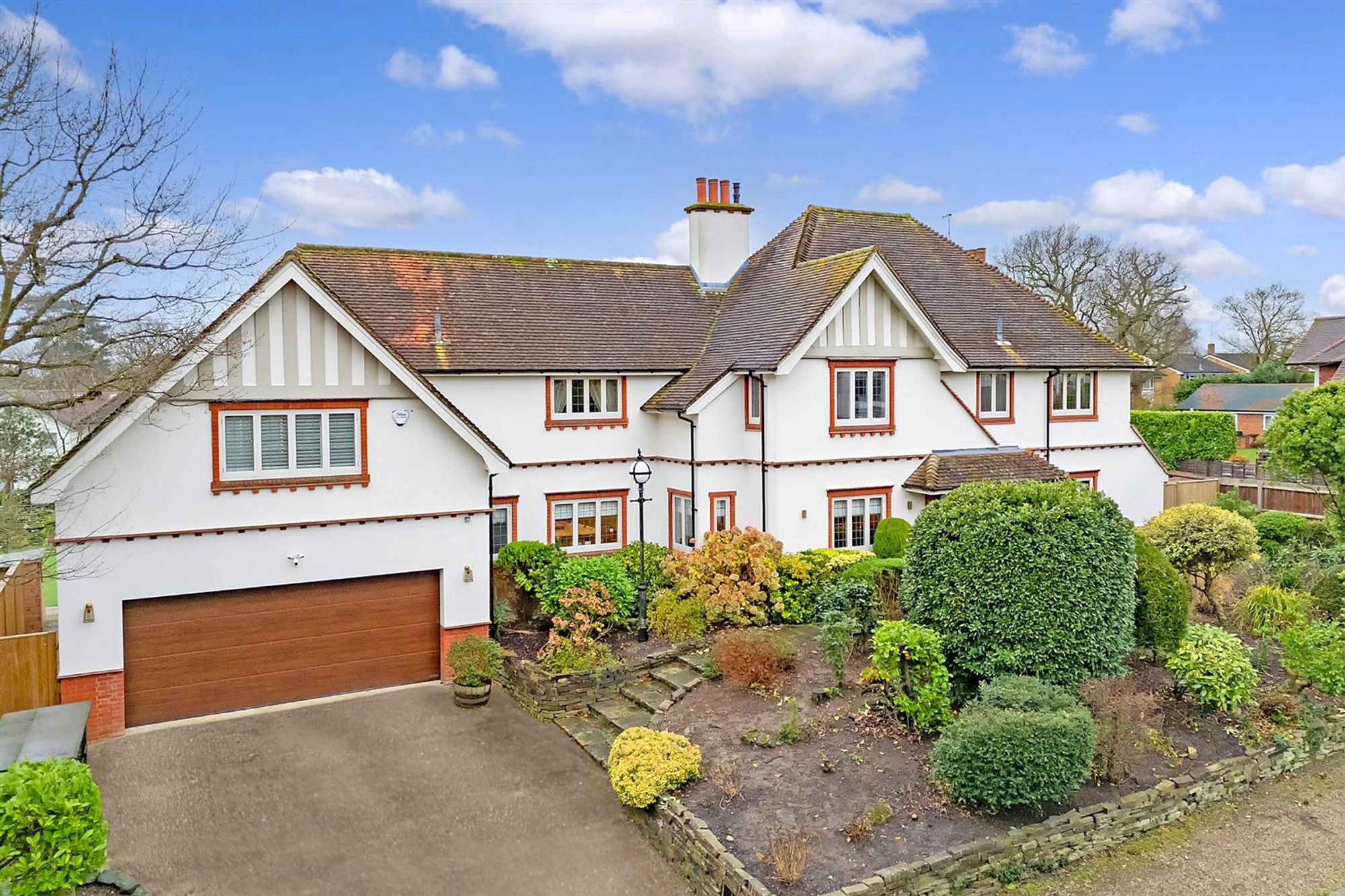 Approached via a private road leading to electric gates, providing access to a sweeping driveway to the front of the property and detached double garage. The stunning interior is approached via a vaulted entrance hall with open plan dining area, giving access to a study overlooking the luxury indoor pool with an adjoining wet room. There is also a separate gym, which could be utilised as a playroom, etc. The open plan kitchen was created by Stanford Designs and fitted in 2015, featuring Miele appliances including an induction hob, coffee machine, wine fridges, plus combination and conventional ovens. There are Silestone Quartz worktops, a Perrin and Rowe butler sink with hot water tap by Quooker, and a Siemens American fridge/freezer. The ground floor also enjoys a sitting room off the kitchen/breakfast room with panoramic views of the garden; a lounge currently used as a games room; utility room, and separate cloakroom/wc. The garden/sitting room adjoining the kitchen and master bedroom are both air conditioned.