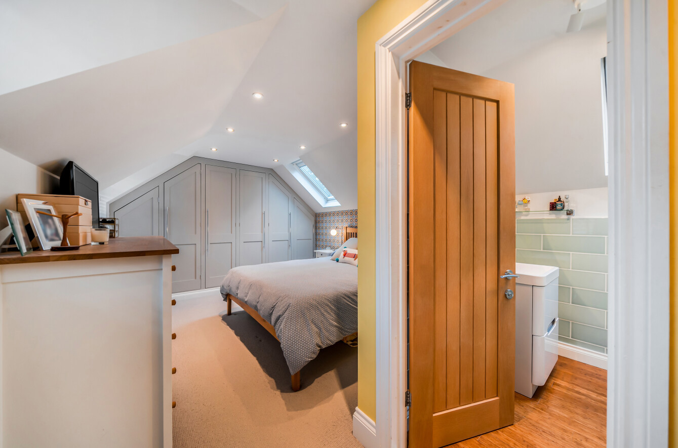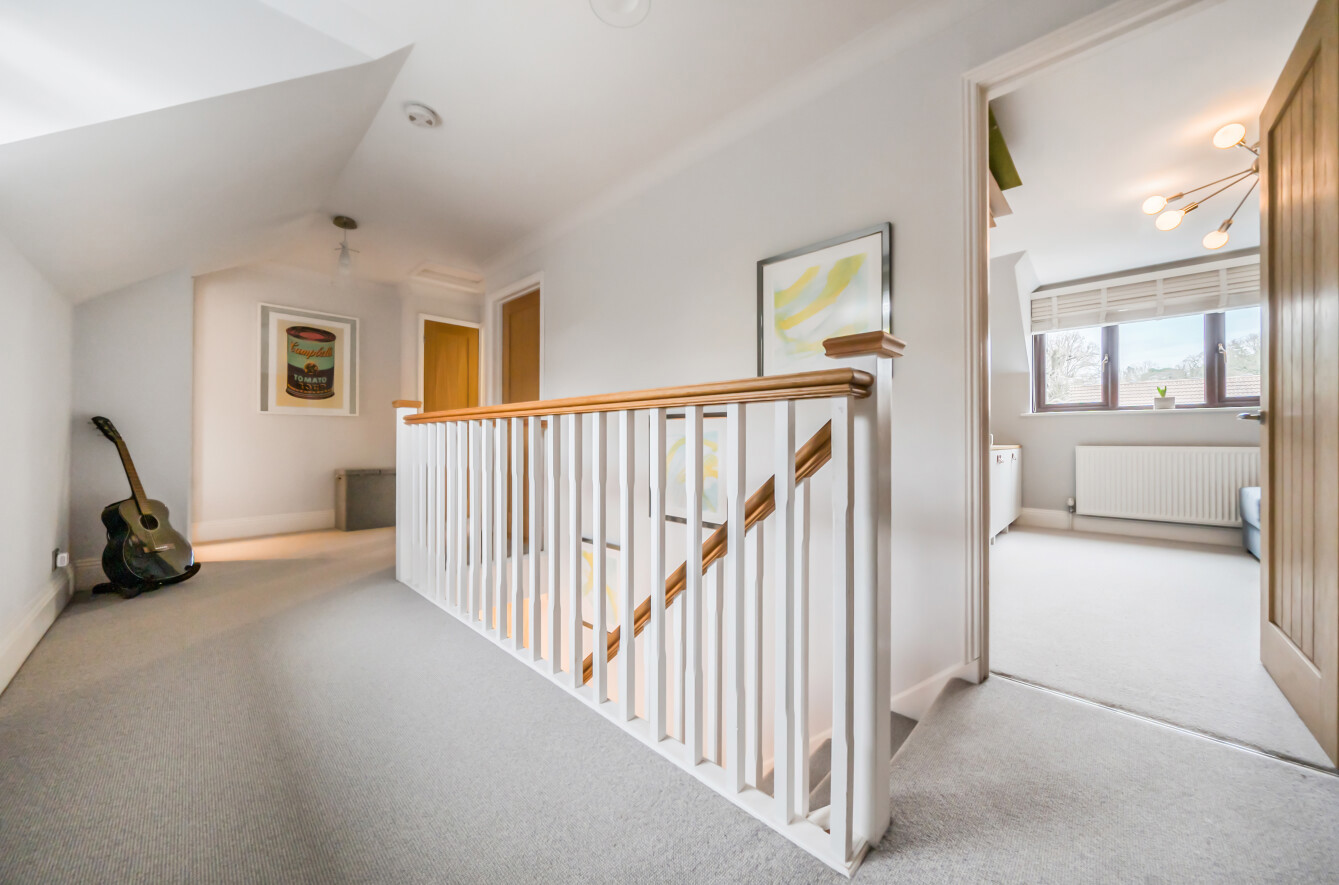 Moving to the first floor there are four good sized bedrooms, 2 en suites and a family bathroom. The master bedroom is a good sized dual aspect double with a wall of built in wardrobes and an en suite shower room. Bedroom two is a great double with en suite shower room (and was the original master before the house was extended).
