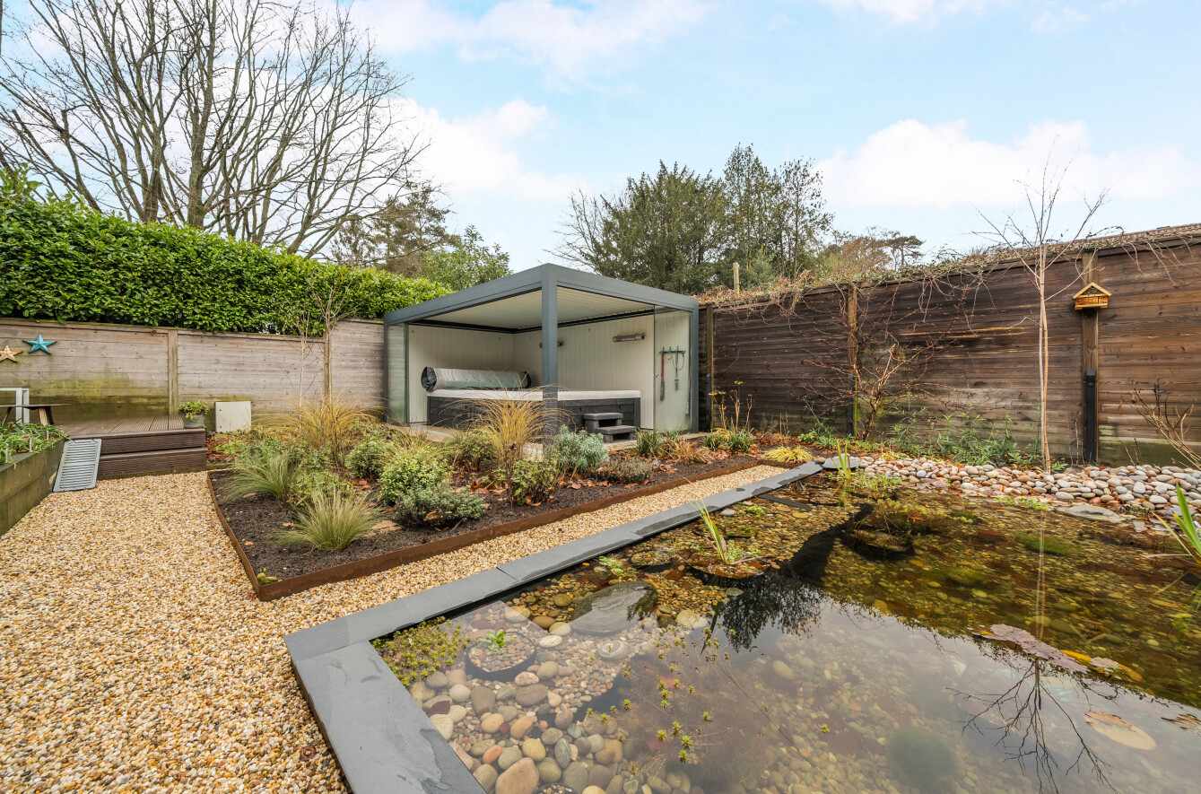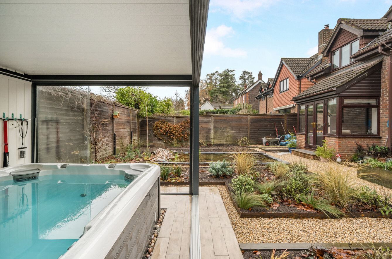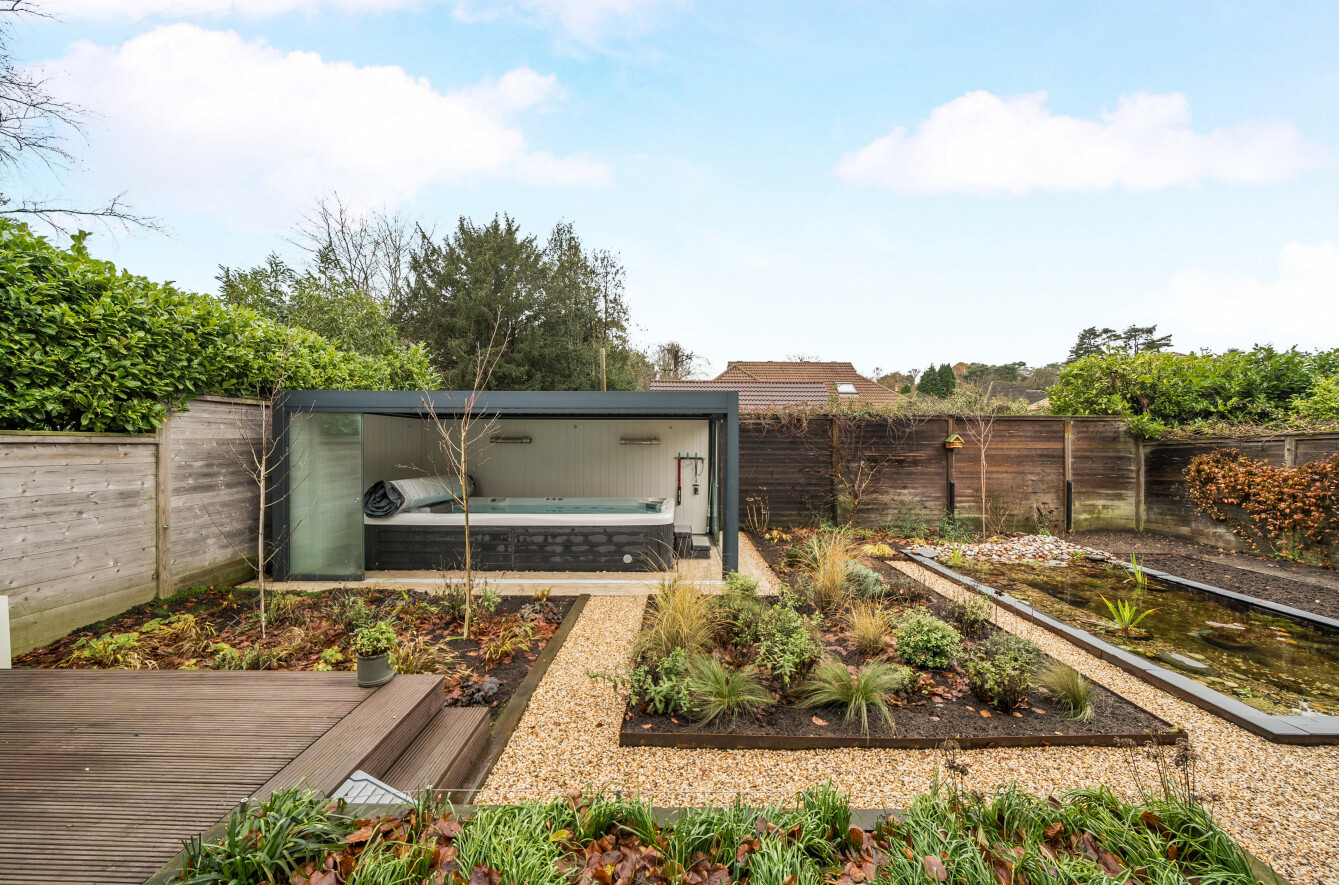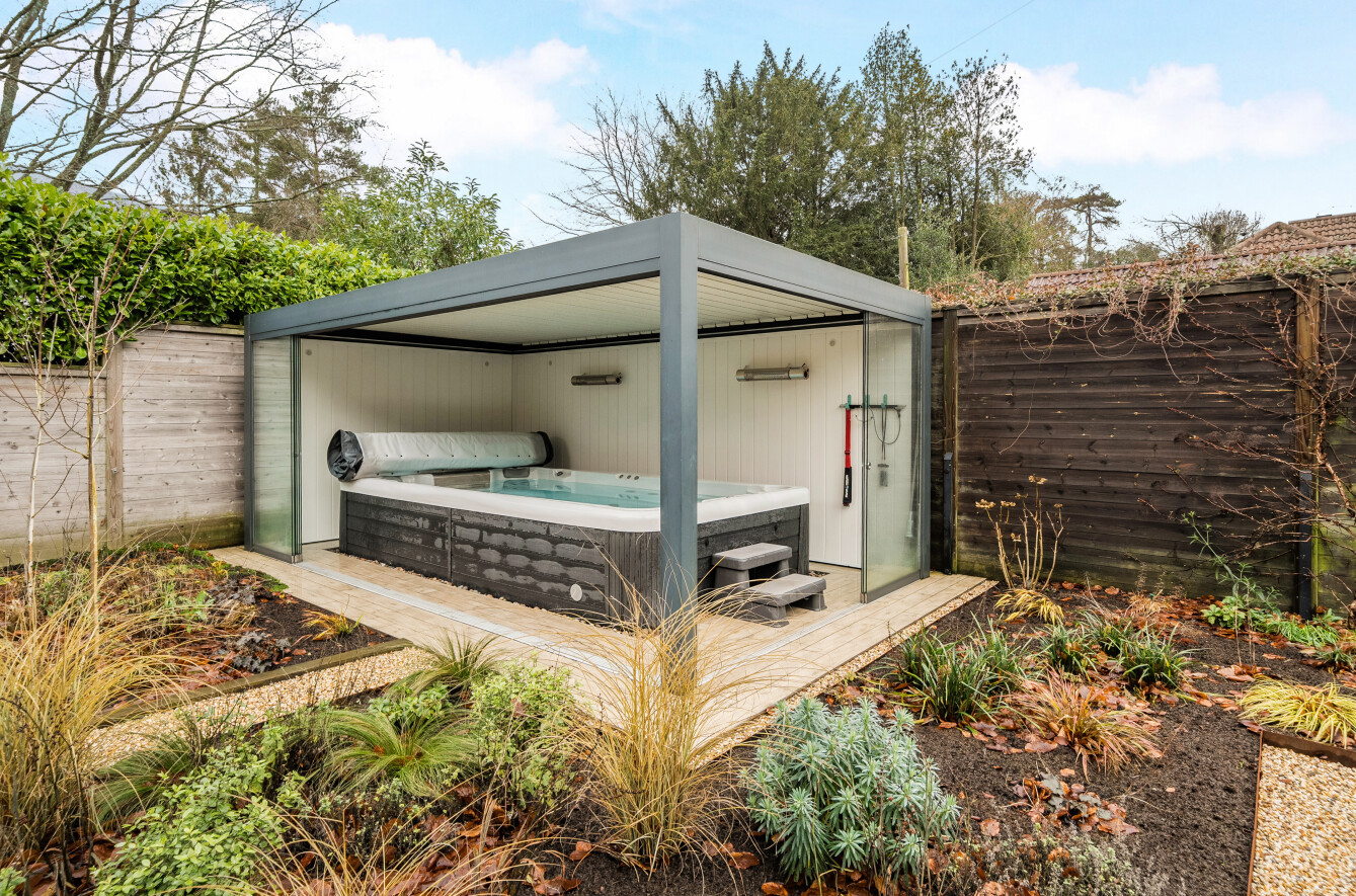 A fantastic four bedroom detached family house with home office pod and covered Wellis swim spa offering a luxurious blend of relaxation, training and wellness benefits.