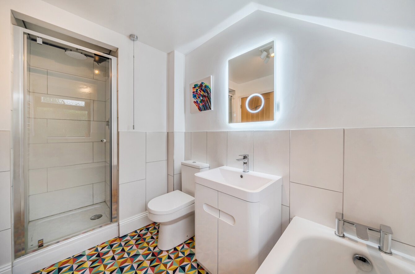 The family bathroom offers both bath and separate shower. With four bedrooms and three bath/shower rooms there is flexible provision for an active family.