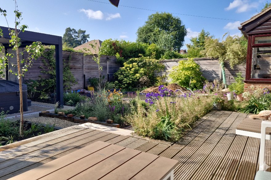 Adjacent to the house is a decked terrace, ideal for the afternoon and evening sun. Gravel pathways meander through the garden which has a selection of formal flower beds and a large wildlife pond which thrives in the summer, attracting a variety of dragonflies, frogs and other native wildlife.