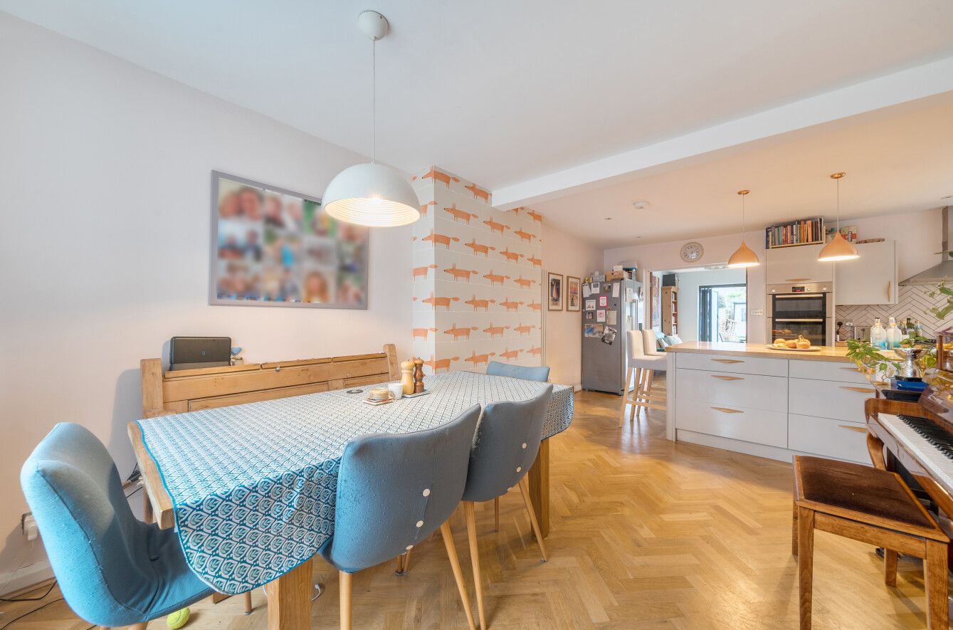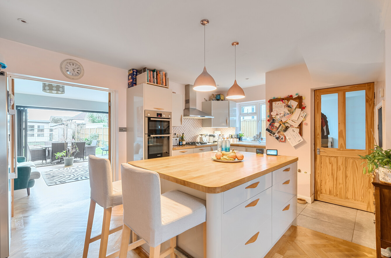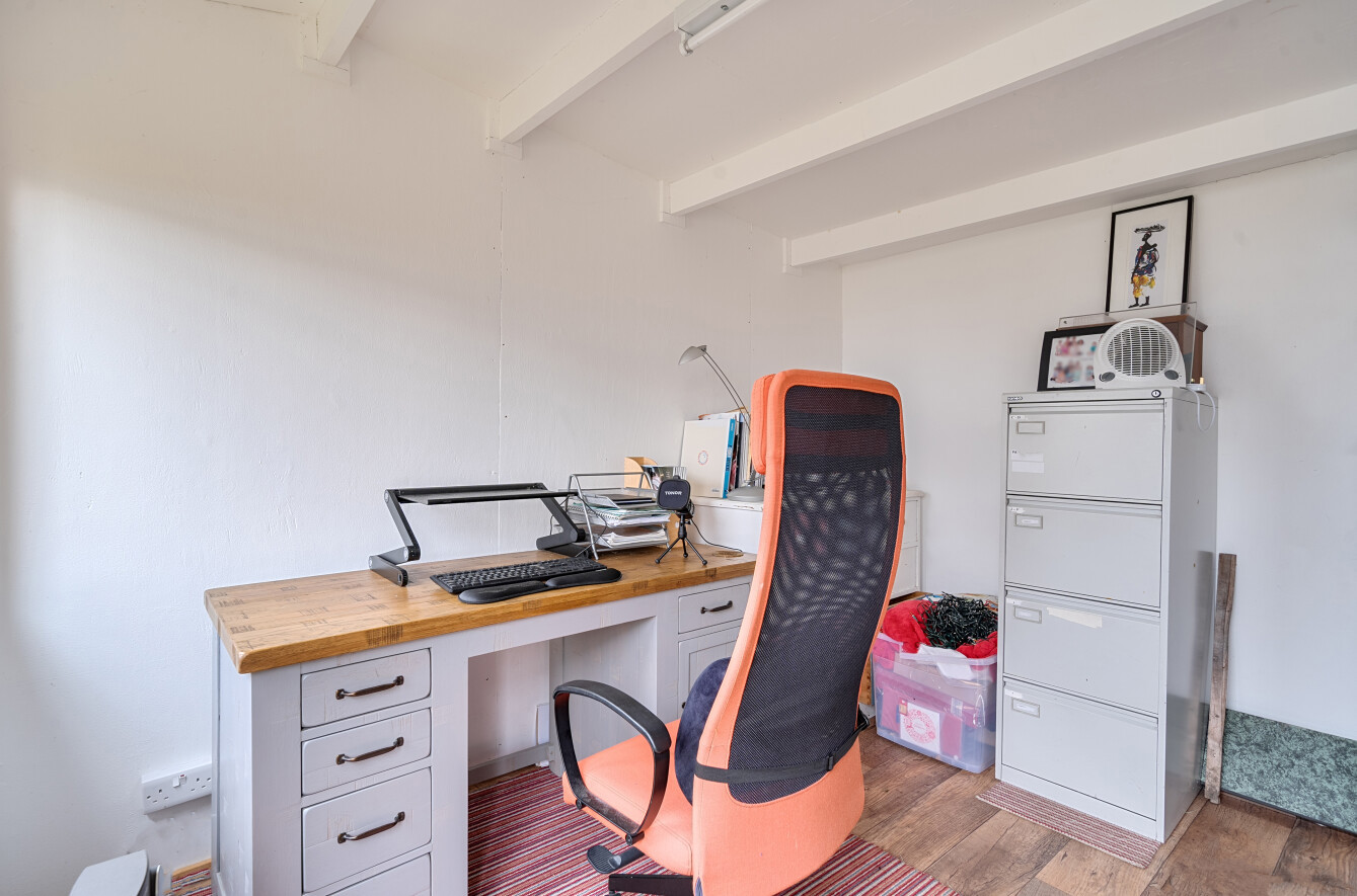 Rear aspect Bi-fold doors open the space effortlessly to the outdoors, creating an inviting flow that’s ideal for entertaining, summer evenings or simply soaking up the sunshine. The generous and private garden also features a stylish garden room to the rear — an excellent work-from-home space, studio or quiet retreat.