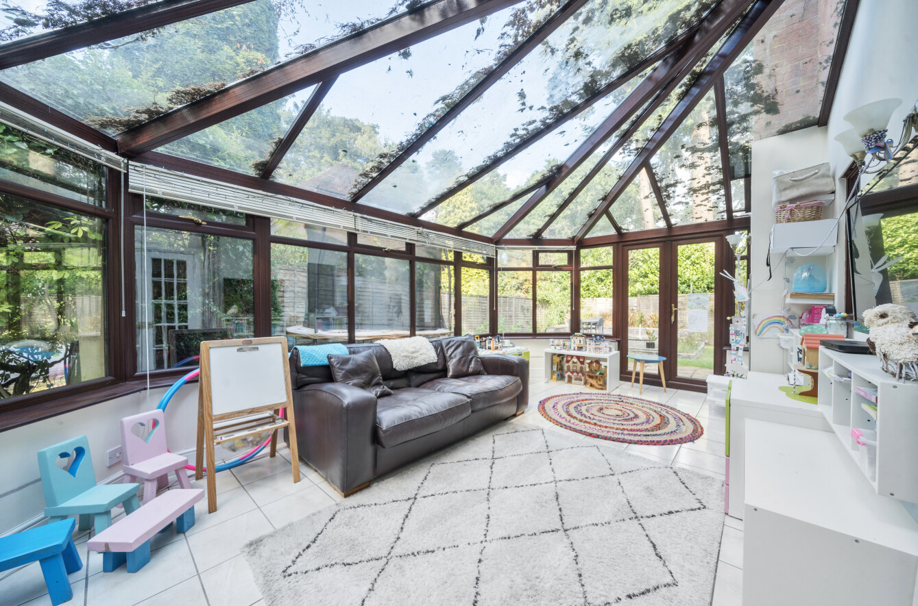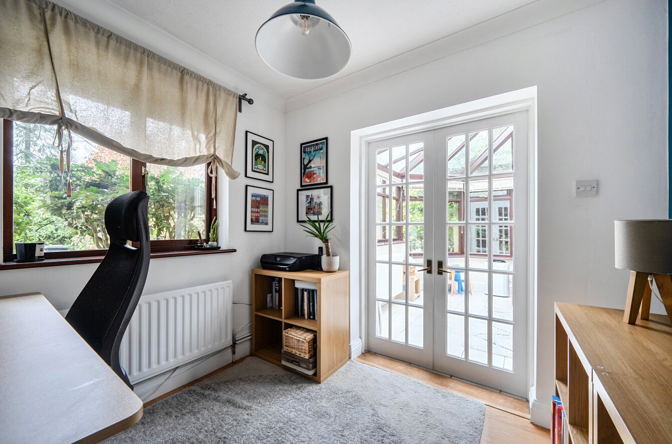 Double aspect sitting room with feature fireplace, wood burning stove, and sliding patio doors onto the garden. A wide archway leads through to a formal dining room overlooking the garden; collectively creating a superb entertaining area. To the front of the house is a 3rd reception room, currently used as a study, which leads through to a large conservatory, with radiators in situ this is another flexible reception space that can be used all year round. Ideal in it's current use as a family/movie room.