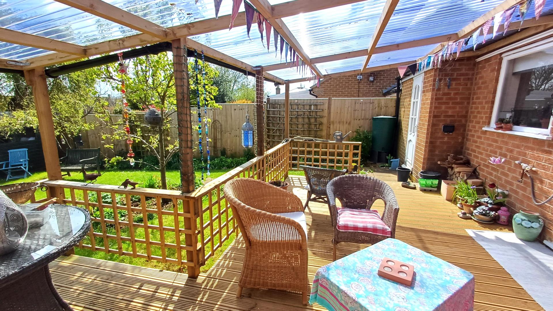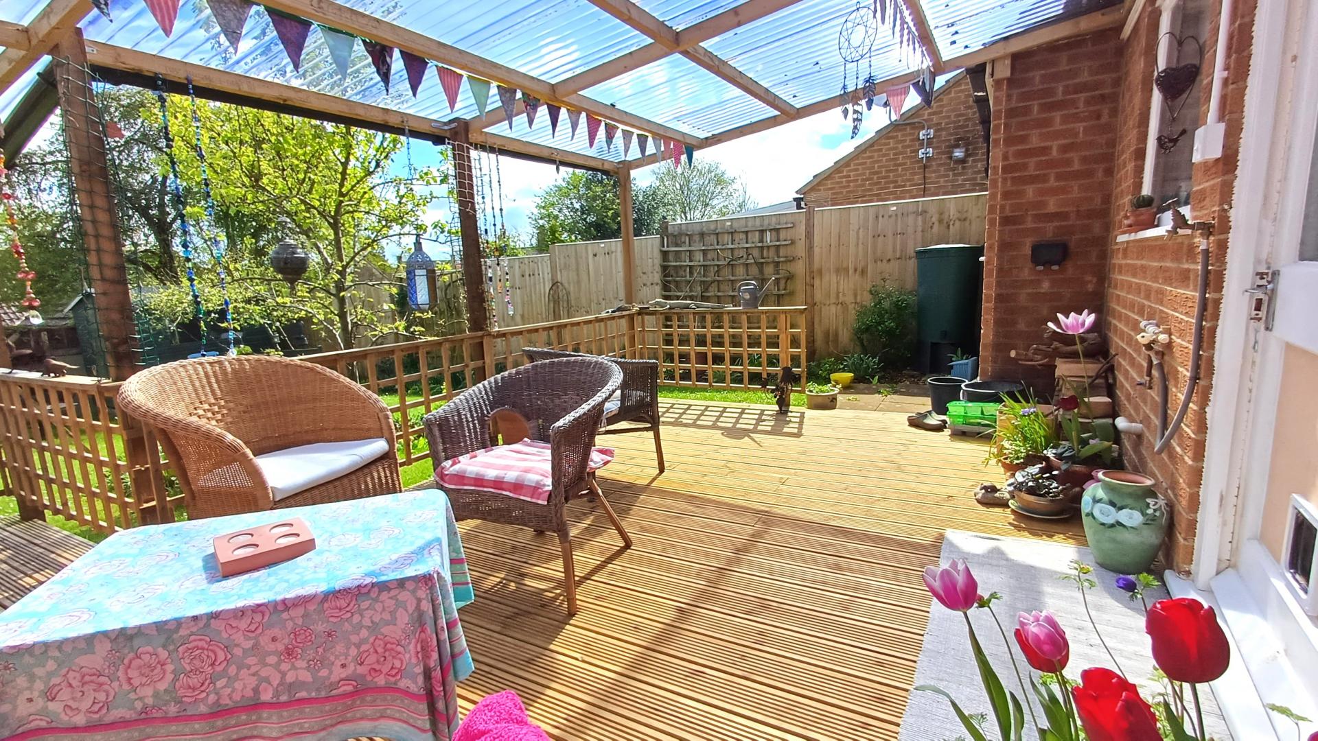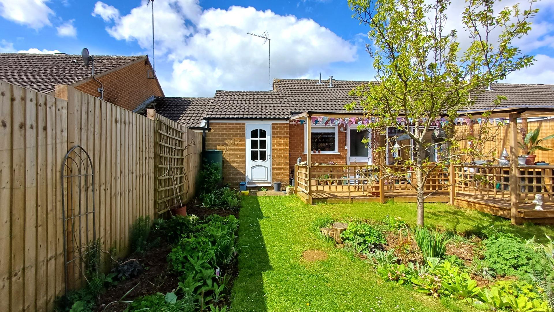 A BEAUTIFULLY PRESENTED TWO BEDROOM END OF TERRACE BUNGALOW WITH A LEVEL ACCESS TO VILLAGE FACILITIES, A CUL DE SAC SETTING & DELIGHTFUL PRIVATE GARDENS. ENTRANCE HALL, LIVING ROOM TO GARDEN WITH WOOD BURNING STOVE, KITCHEN BREAKFAST ROOM WITH DOOR TO GARDEN, TWO BEDROOMS, BATH/SHOWER ROOM, ELECTRIC HEATING, DOUBLE GLAZING. OUTSIDE: FRONT: PRIVATE OFF-ROAD PARKING, DECORATIVE GARDEN, GARAGE WITH DOOR TO GARDEN. REAR: DECKED PERGOLA SEATING AREA, ESTABLISHED GARDENS WITH FRUIT TREES & TWO SHEDS.