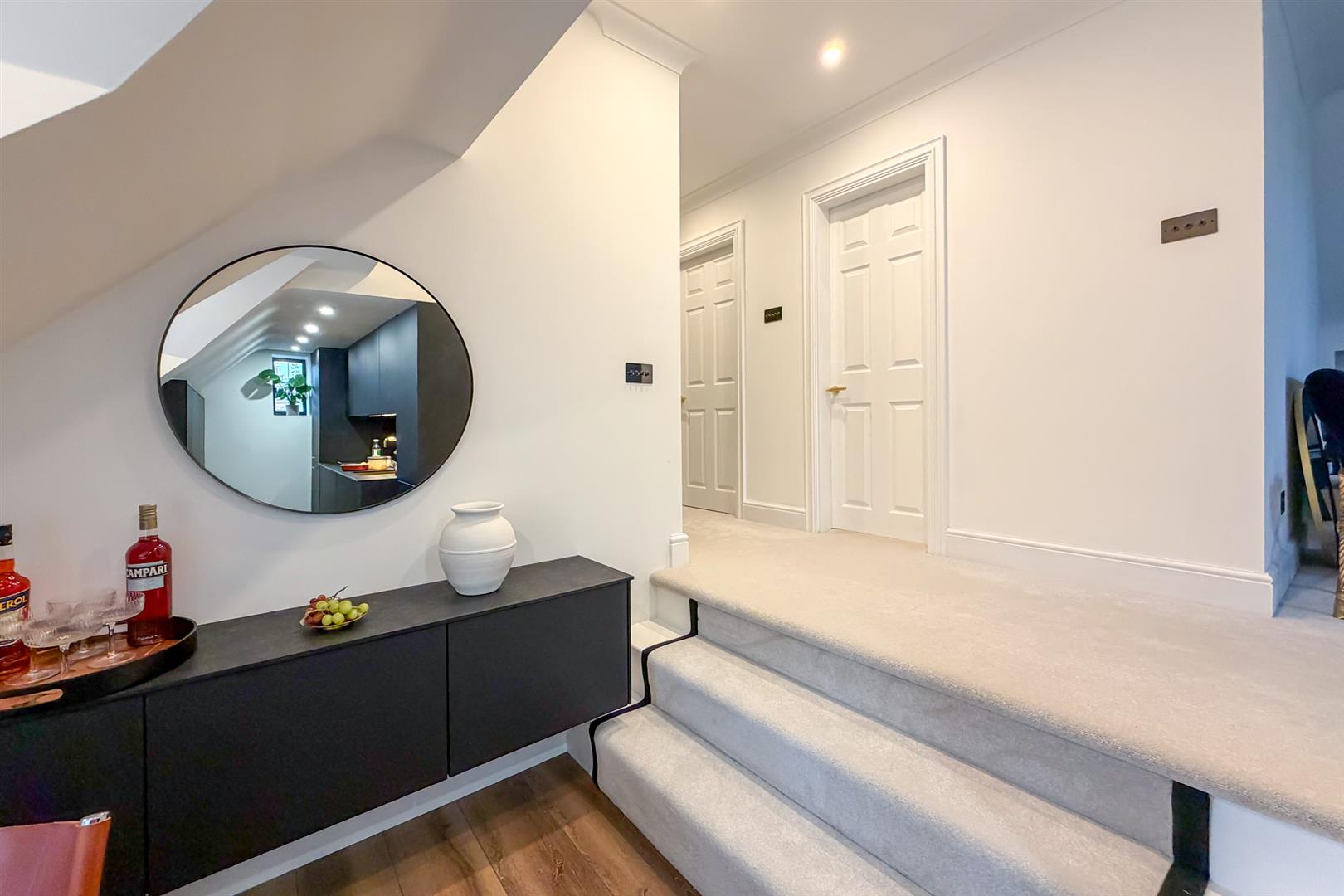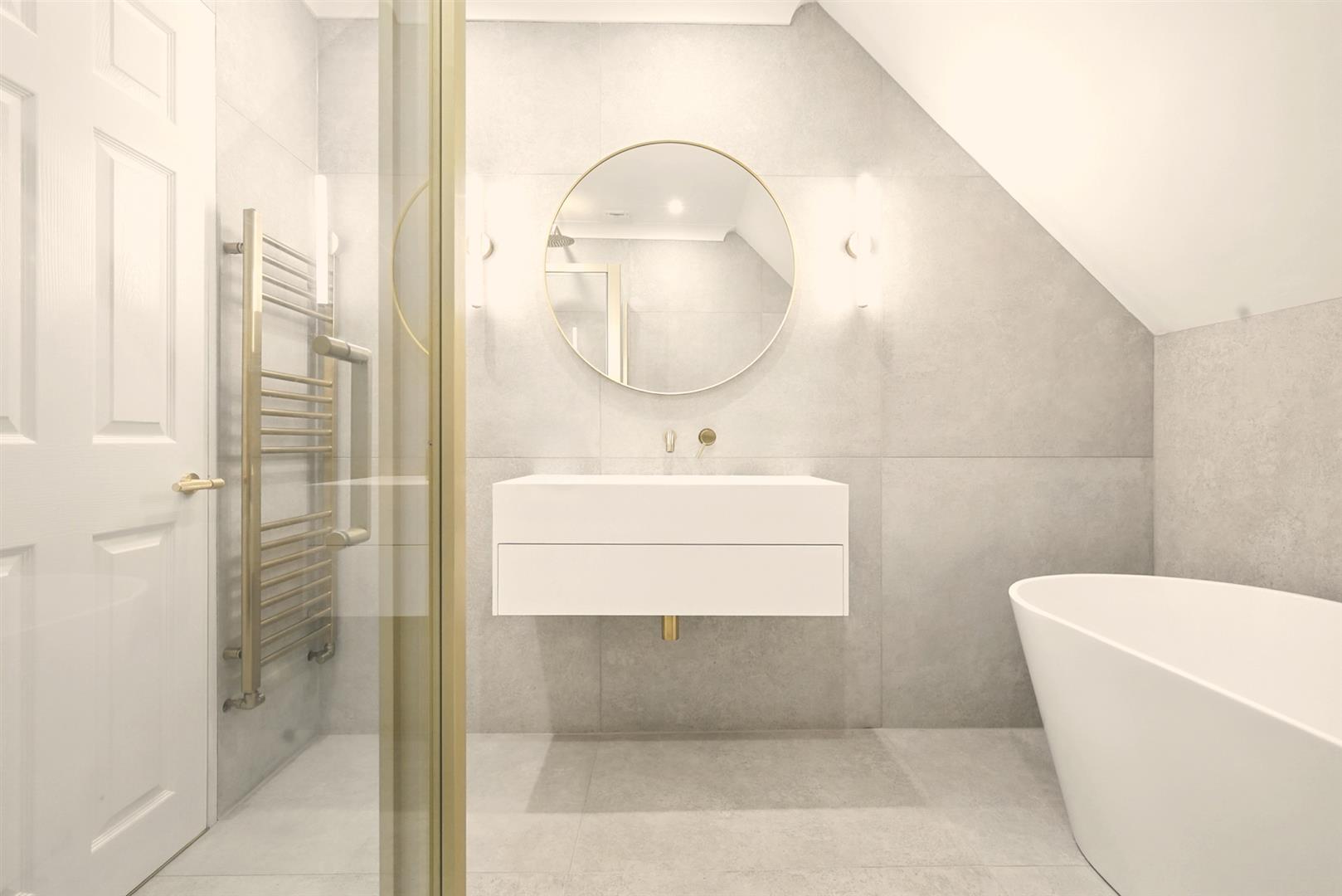 The property offers a generous layout, with each room finished to a high standard. The entrance hall includes practical storage cupboards, while the bright and spacious living room enjoys large windows and ample space for both relaxing and entertaining. From here, an access hatch with built-in ladder leads to a large loft area - superb for additional storage. The sleek kitchen/dining room has been tastefully fitted with German contemporary cabinetry, high-quality appliances, and a stylish dining area, perfectly designed for everyday living. The double bedroom is a superb size and benefits from built-in wardrobes, while the bathroom has been refitted to a luxurious standard complete with underfloor heating, a freestanding bath and separate walk-in shower. Throughout, the home has been decorated with a modern, neutral palette, creating a calm and inviting atmosphere that enhances the natural light.