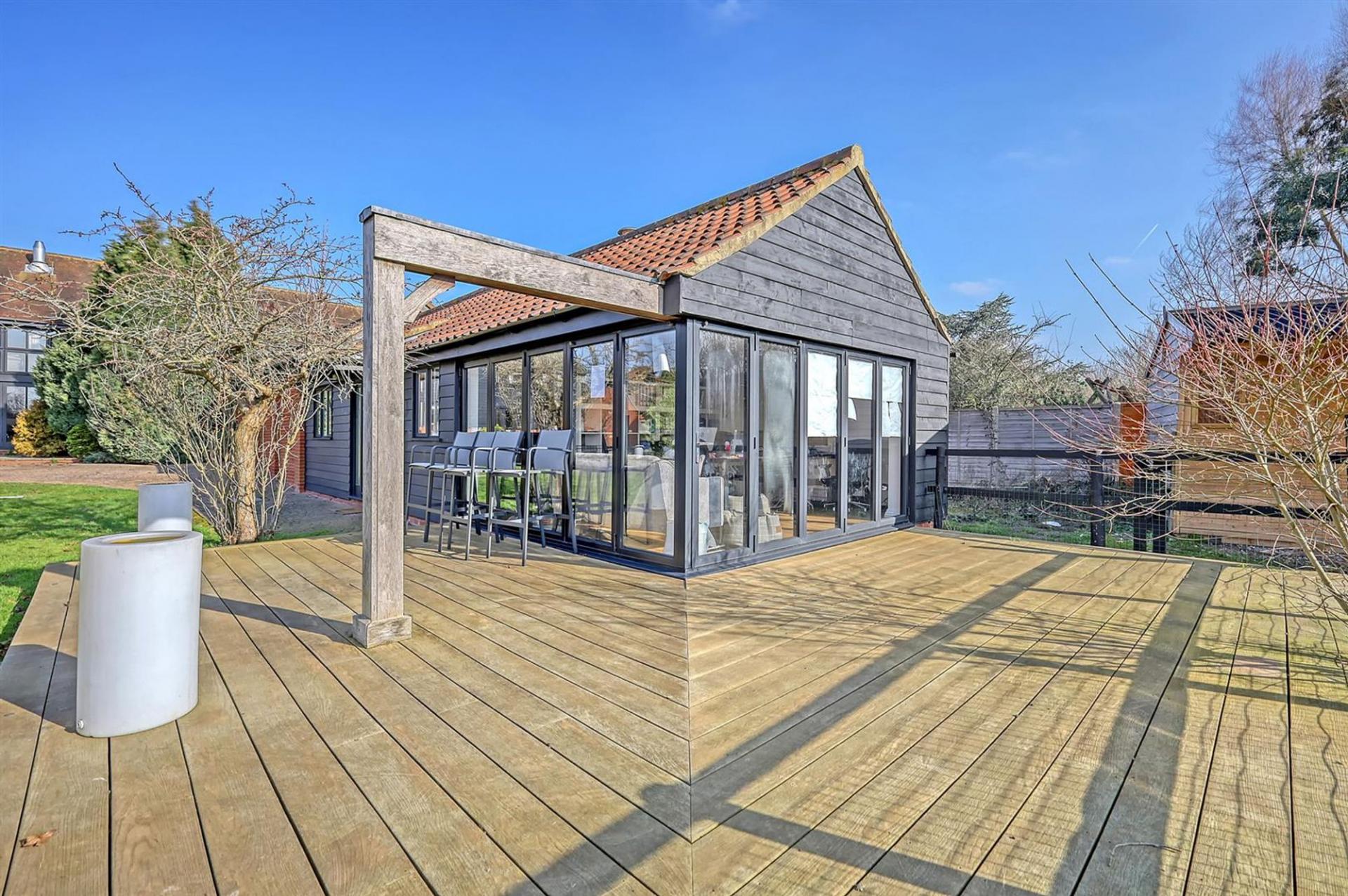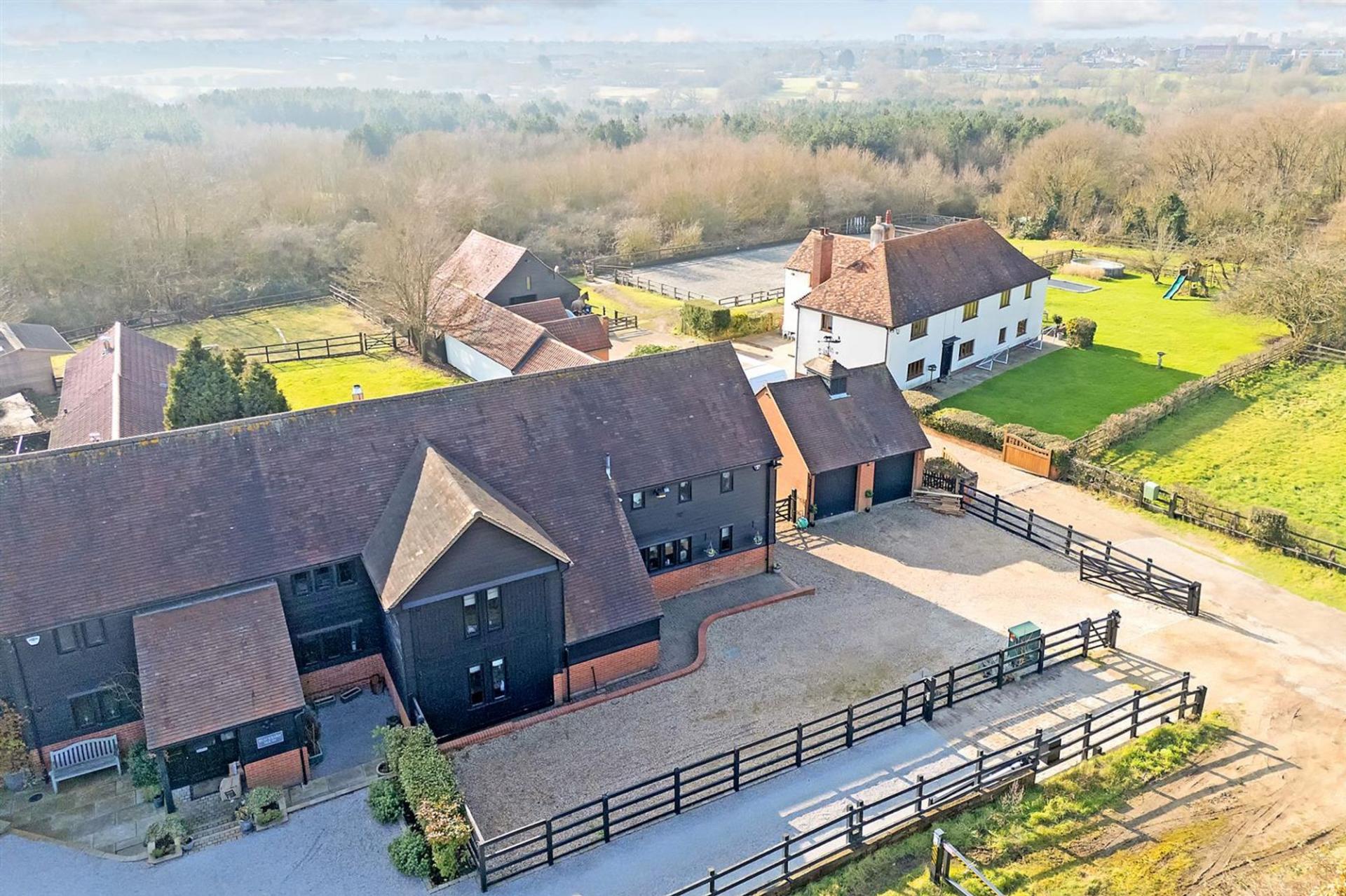 Set behind secure gates, this impressive Grade II listed barn conversion - one of two adjoining barns - offers an exceptional blend of space, character, and convenience, situated on the edge of Harold Wood with scenic rural outlooks while remaining within easy reach of town amenities. The property features characterful living accommodation across two floors, complemented by an annexe/outbuilding, ideal for a home office, gym, or guest accommodation.
