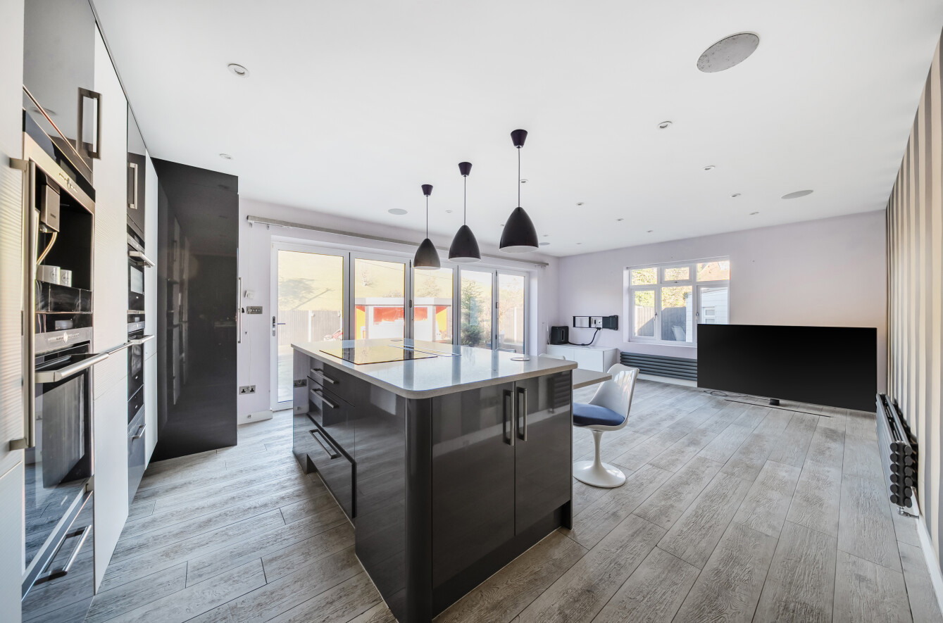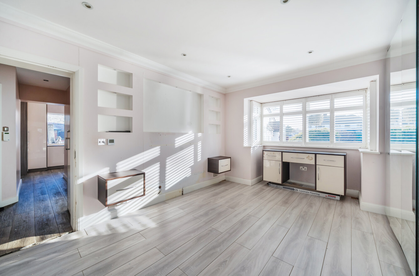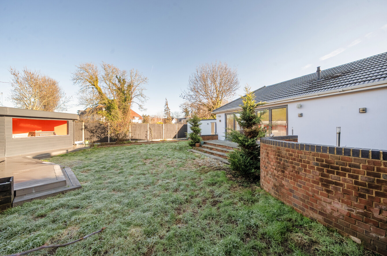 This three-bedroom semi-detached bungalow is quietly situated on a residential road and offers a comfortable family home. The property has been extended to provide spacious living areas and features modern touches such as underfloor heating.Inside, there is a well-appointed bathroom and a bright, open-plan kitchen and living area with integrated appliances and bi-fold doors opening onto the garden. The main bedroom includes a fitted walk-in wardrobe, with an additional room currently used as a home office and plenty of storage throughout.The landscaped garden includes a fire pit, BBQ area, and fitted speakers, ideal for outdoor entertaining. There is also an outdoor room, currently used as an office, which includes a shower room.