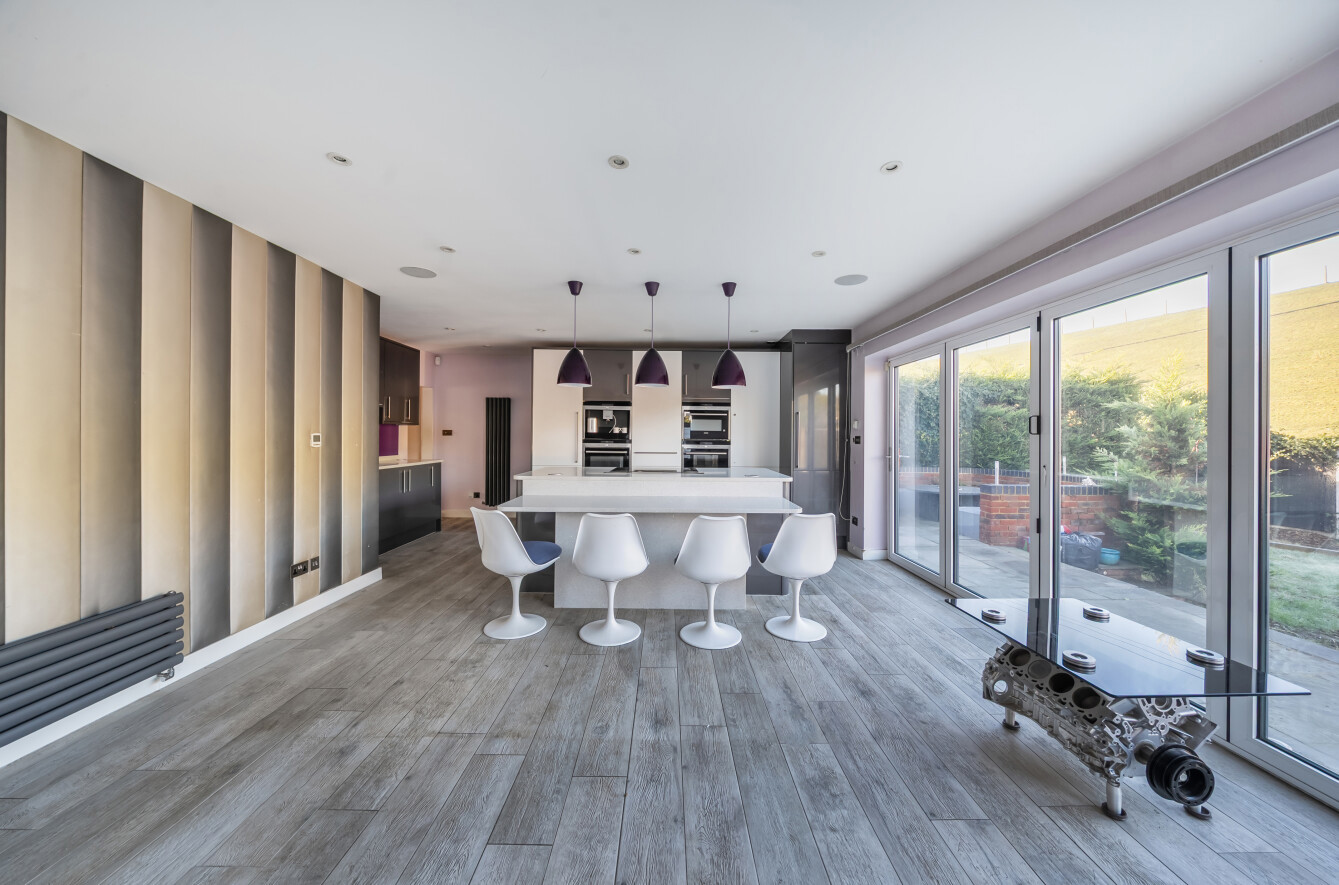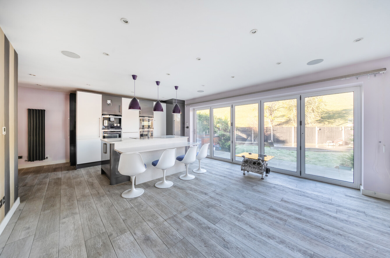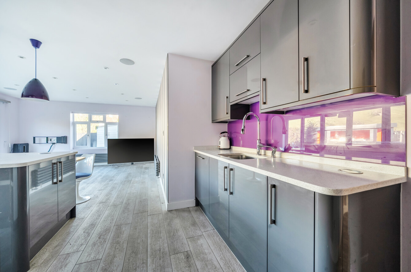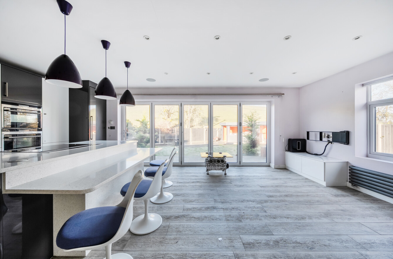 This three-bedroom semi-detached bungalow is quietly situated on a residential road and offers a comfortable family home. The property has been extended to provide spacious living areas and features modern touches such as underfloor heating.Inside, there is a well-appointed bathroom and a bright, open-plan kitchen and living area with integrated appliances and bi-fold doors opening onto the garden. The main bedroom includes a fitted walk-in wardrobe, with an additional room currently used as a home office and plenty of storage throughout.The landscaped garden includes a fire pit, BBQ area, and fitted speakers, ideal for outdoor entertaining. There is also an outdoor room, currently used as an office, which includes a shower room.