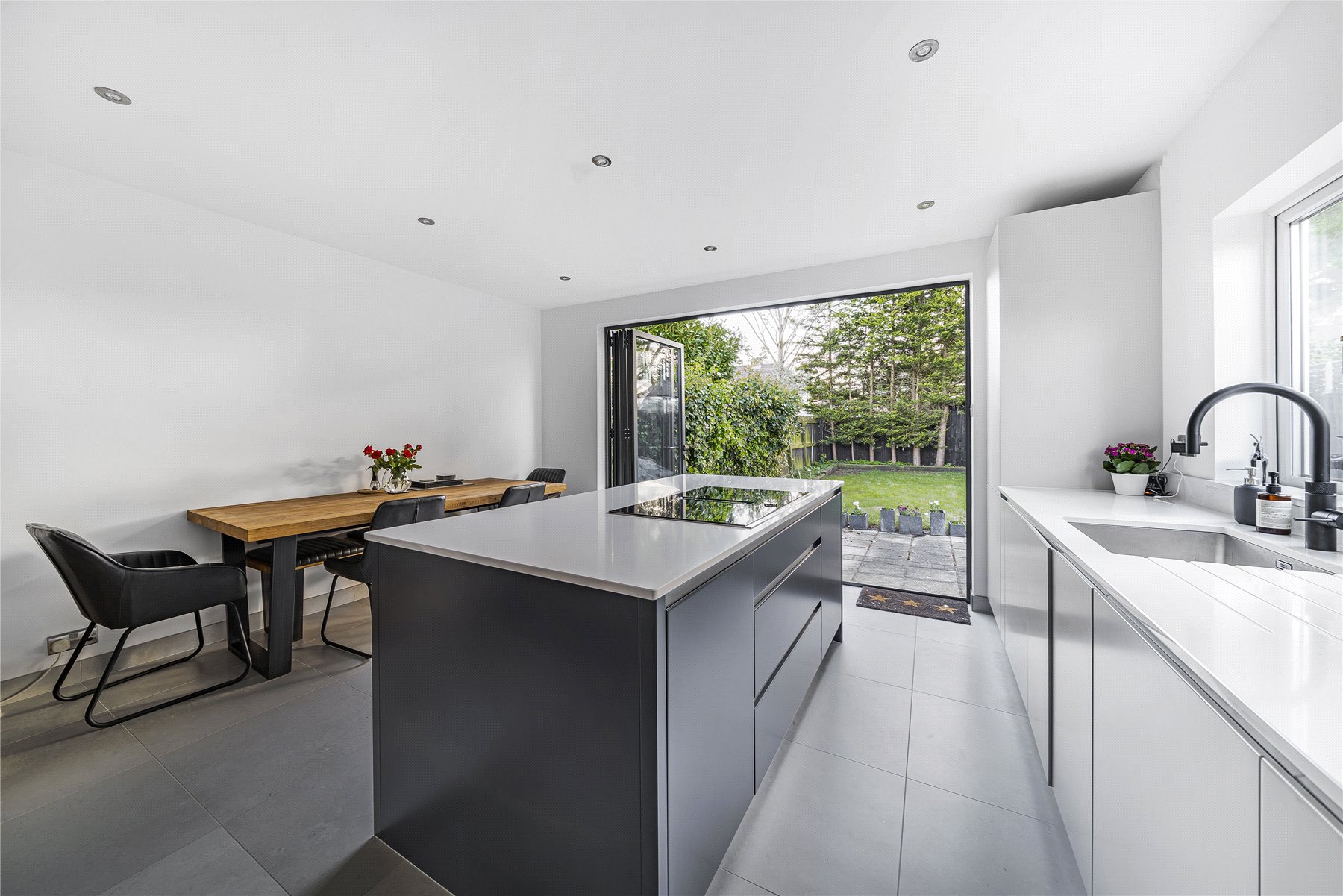 The accommodation on the ground floor comprises an entrance hall, open-plan lounge/dining room with bay window, modern re-fitted shower room with under floor heating, utility room and a stunning kitchen/breakfast room both also with underfloor heating, as well as stunning Cosentino surfaces, and high-end Neff appliances, which are mostly connected and controllable through an app, including a series 9 induction hob with integrated extraction. The kitchen features a Quooker tap with both instant boiling and filtered water and bi-fold doors to the garden.