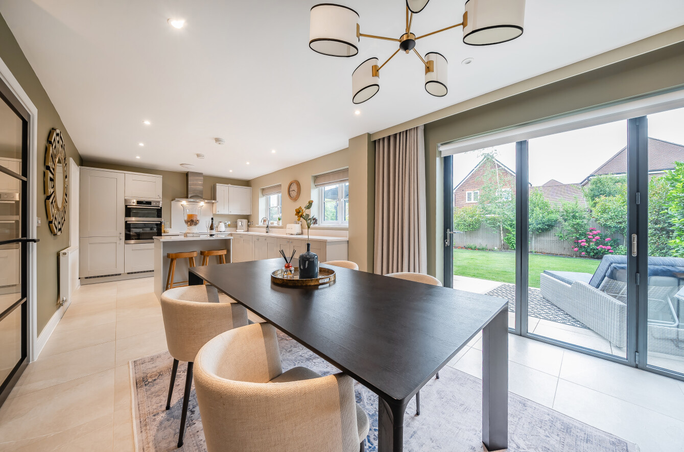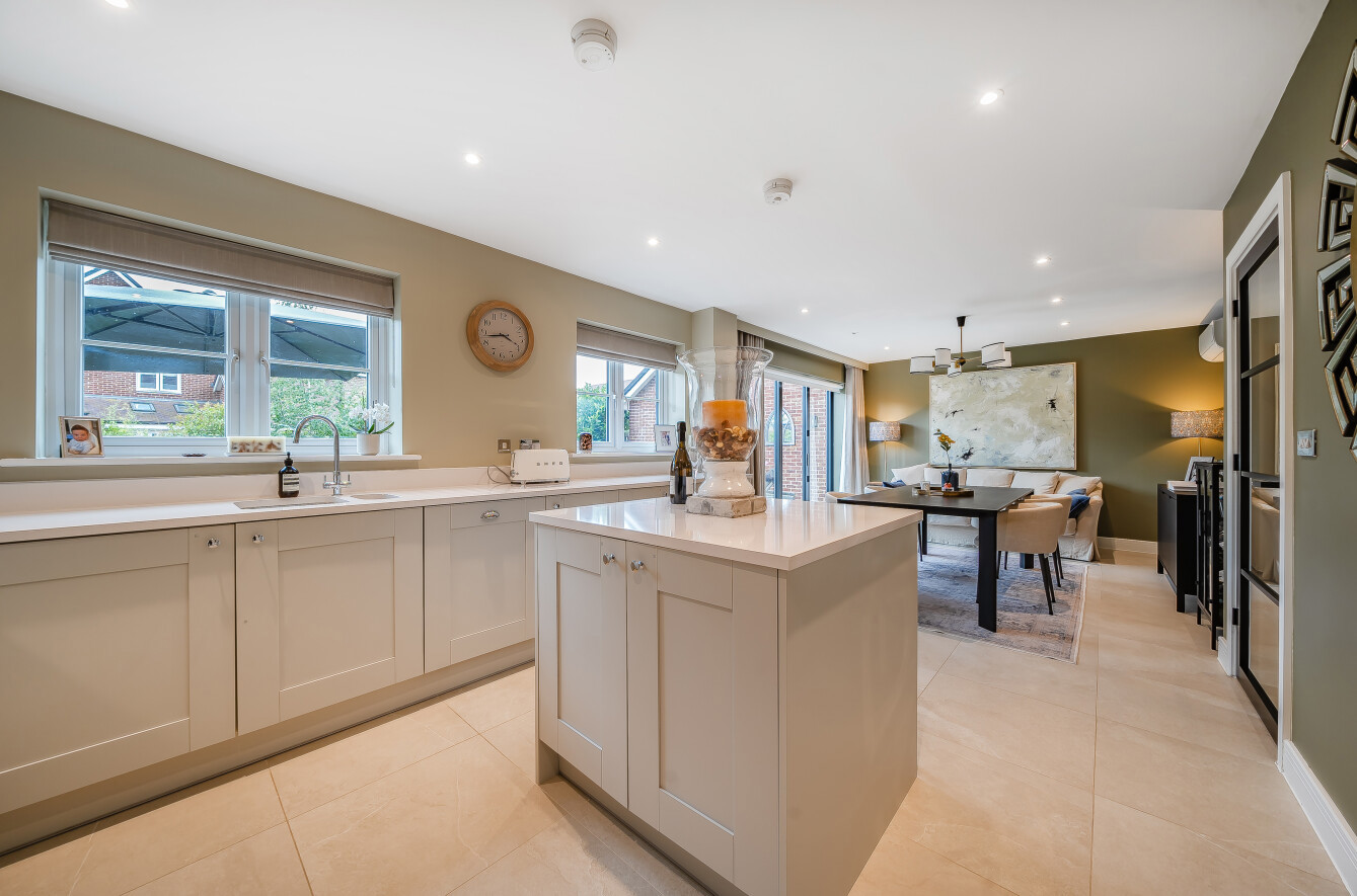 This modern detached family home is situated in a sought-after cul-de-sac in Walton-On-Thames and offers a perfect blend of high-spec finishes, practical space, and family-friendly features. The property includes four well-proportioned bedrooms, with the master bedroom and also a guest bedroom both benefitting from private ensuite bathrooms, in addition to a contemporary family bathroom. The heart of the home is a spacious 27' kitchen/dining/family room, ideal for both entertaining and everyday living. This area has been thoughtfully upgraded by the current owner to include high-spec bifold doors that open out to the garden, extended worktop space, and premium appliances and finishes throughout.