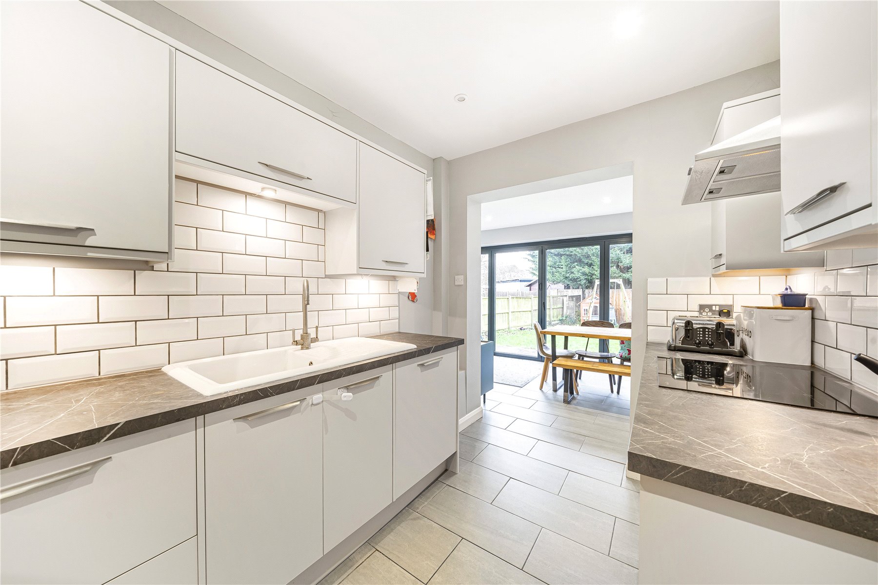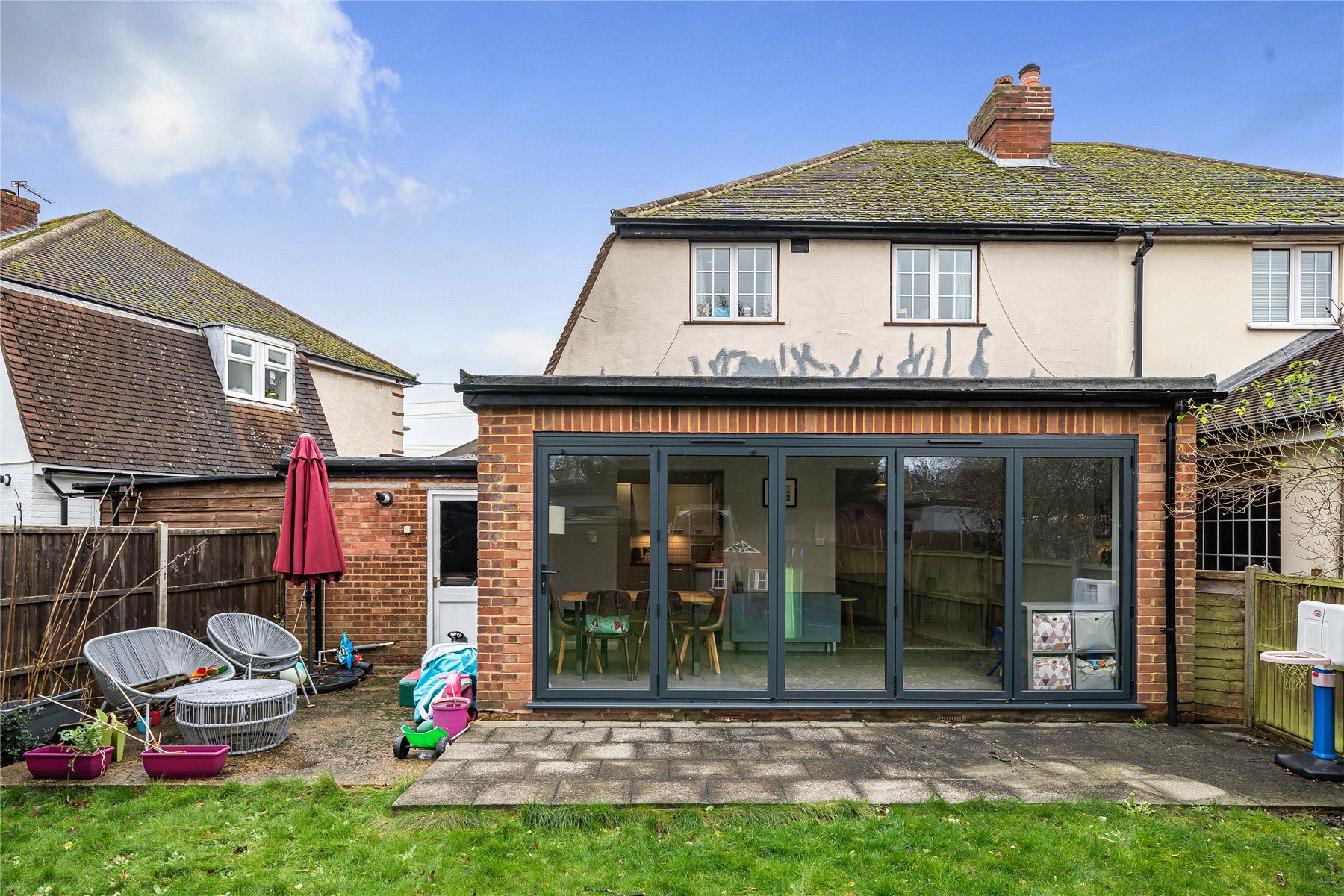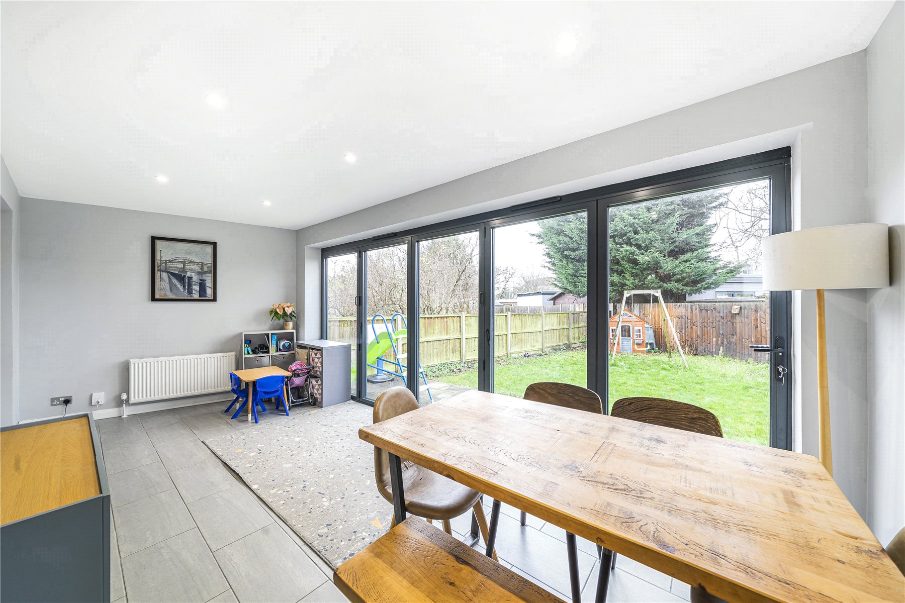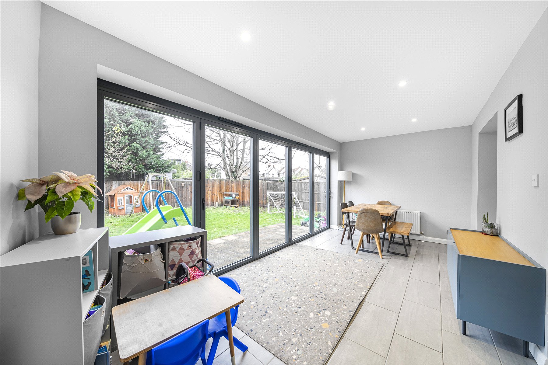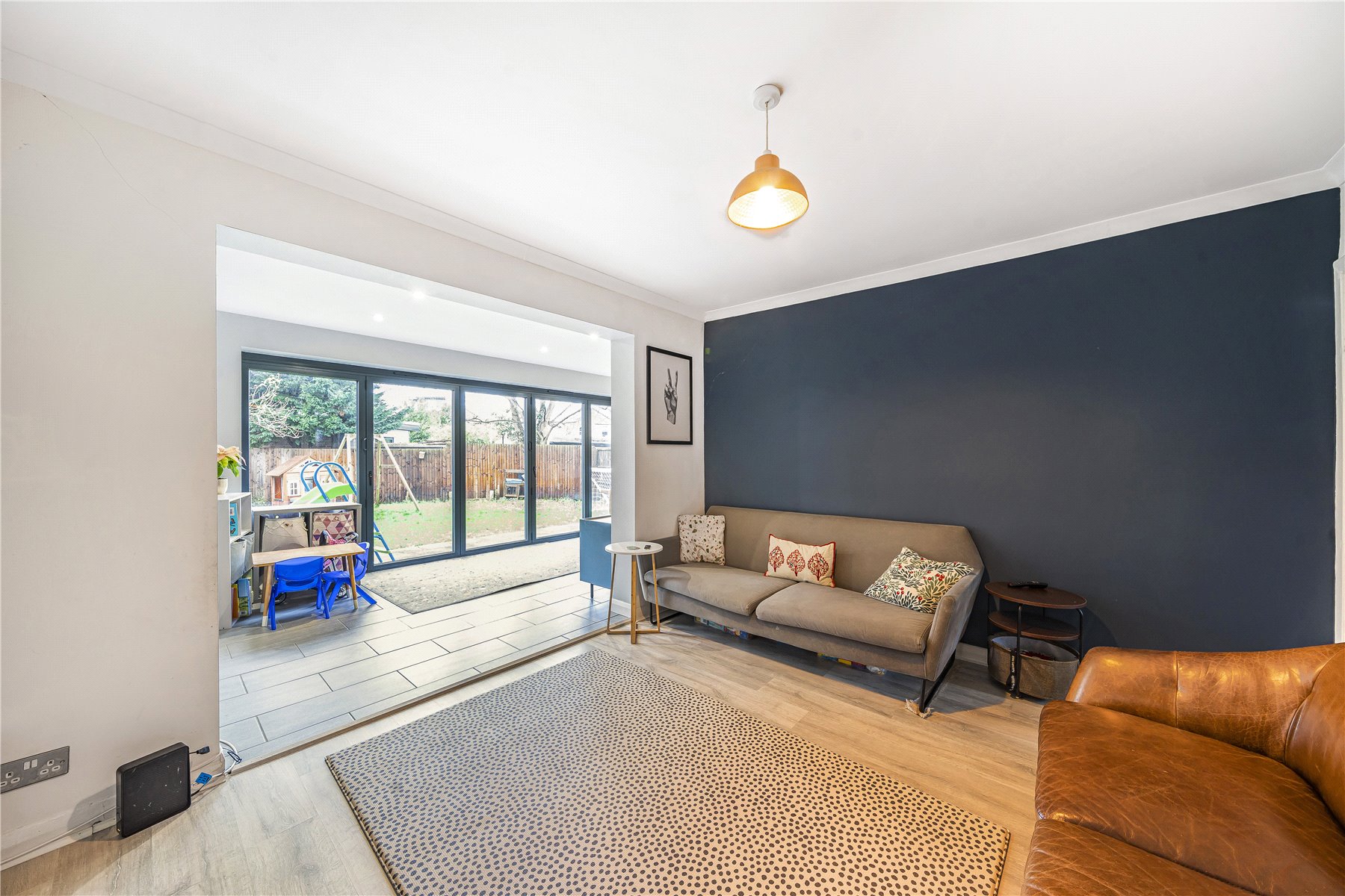 The ground floor accommodation is very flexible, with three reception rooms, including a lovely rear extension with bi-fold doors leading onto the rear garden. There is also a modern kitchen with direct access into the garage.
