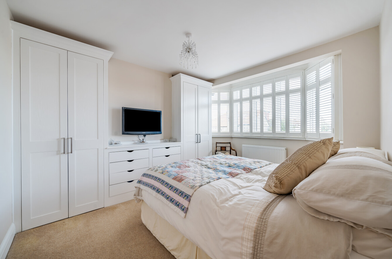 Three good sized bedrooms and the luxury four-piece family bathroom occupy the first floor with the generous attic space above. The property also benefits from attractive wooden shutters fitted throughout. Externally, the block paved driveway provides off road parking, wide side access to the attractive rear garden extending to approx. 70ft+ inclusive of a large private patio and expanse of lawn ideal for a growing family. There is also a very useful Detached Garage.