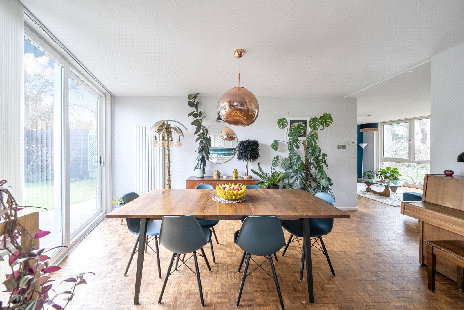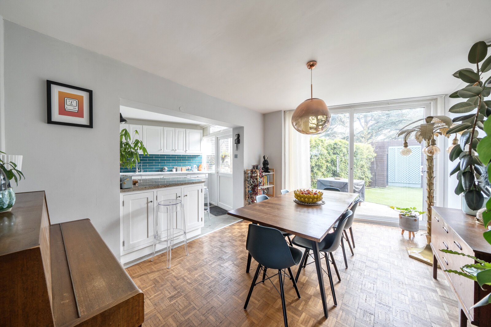 A wonderfully bright and contemporary four-bedroom link-detached home, ideally positioned within the highly regarded Templemere development in the sought-after Oatlands area of Weybridge.Built as part of an award-winning 1960s SPAN development, the property forms part of an architecturally significant collection of homes set within approximately 12 acres of beautifully landscaped communal groundsoffering a rare blend of design heritage and tranquil surroundings.The accommodation is thoughtfully arranged to suit modern living, featuring a spacious open-plan lounge and dining area with striking parquet wood flooring, creating a warm yet contemporary feel. Large windows flood the space with natural light, enhancing the homes bright and airy atmosphere.Upstairs, four well-proportioned bedrooms provide flexible living space for families, guests, or home working. Outside, the property benefits from an easy-to-maintain rear gardenideal for relaxing or entertainingalong with a double garage and additional parking for two vehicles to the rear.Templemere is particularly popular with families, thanks to its close proximity to Weybridges highly regarded schools, as well as excellent transport links. Weybridge mainline station offers regular services to London Waterloo, while the A3 and M25 are easily accessible, making it ideal for commuters.This is a rare opportunity to acquire a stylish home in a development celebrated for its architectural significance, community feel, and beautifully maintained green spaces.